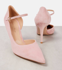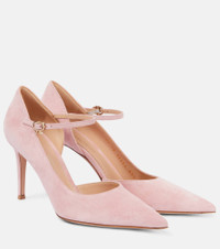 Crafted from materials of the highest quality, Gianvito Rossi’s designs are handmade using both traditional craftsmanship and innovative techniques. Finished with signature hardware at the ankle straps, these stiletto-heeled pumps are made from velvety smooth suede. Product Details - Upper: leather - Lining: leather - Sole: leather insole and sole - Toe shape: pointed toe - Made in Italy - Includes: shoe box, dust bag - Designer color name: Sakura - Item color: pink - Item number: P01063585 Size & Fit - True to size - Narrow at the toe - European sizes - 9cm-3.5" heel (size EU 38)