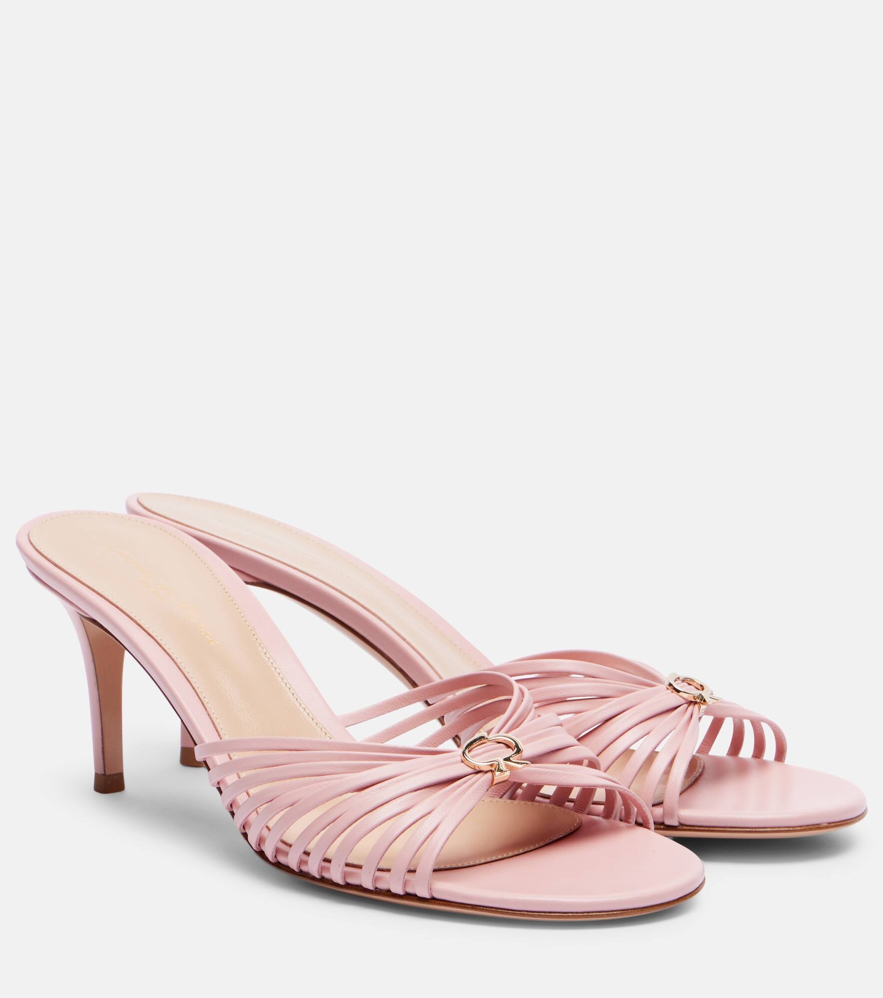 Product Details - Upper: leather - Lining: leather - Sole: leather insole and sole - Toe shape: round open toe - Made in Italy - Includes: dust bag, shoe box - Designer color name: Sakura - Item color: pink - Contains non-textile parts of animal origin - Item number: P01063456 Size & Fit - True to size - European sizes - 7cm-3" heel (size EU 38)
