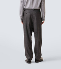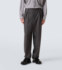 No tailoring edit is complete without a piece from the Italian powerhouse Giorgio Armani. Made from a sumptuous wool and cashmere blend, this suit comprises a double-breasted blazer and straight pants, both complete with a refined chevron pattern. Product Details - Material: 92% wool, 5% cashmere, 3% elastane - Care instructions: dry clean - Made in Italy - Designer color name: Moonless Night - Item color: gray - Lining: 100% viscose - Contains non-textile parts of animal origin - Two-piece set - Closure: double-breasted (six buttons), zip and button fastening - Pockets: welt pocket, jetted, internal pockets, slant pockets, back pockets - Cuff: four buttons - Quarter-lined - Belt loops - Single pleat - Hem: unfinished (ready for alteration) - Item number: P01047868 Size & Fit - True to size - Shoulder pad inserts - Dropped shoulders - Oversized - Non-stretchy fabric - Falls below the hip - Wide-leg - Unhemmed for tailoring - Height of model is 187cm-73.5" and wears a size IT 50
