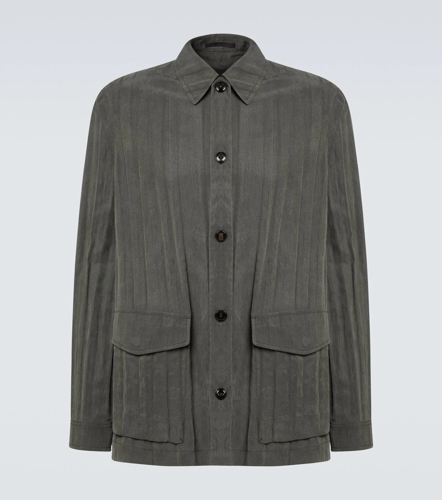 Known for its streamlined modernity, Giorgio Armani presents an elegant take on classic silhouettes and immaculate suiting. This pleated overshirt is made in Italy from lightweight canvas. Product Details - Material: 65% lyocell, 35% polyamide - Care instructions: dry clean - Made in Italy - Color: grey - Designer color name: Dark Shadow - Item color: gray - Contains non-textile parts of animal origin - Collar: classic (Straight point) - Closure: buttoned front - Pockets: snap-buttoned pockets, internal pocket - Cuff: buttoned - Item number: P01083216 Size & Fit - True to size - Straight fit - Non-stretchy fabric - Falls below the hip - Height of model is 189cm-74.5" and wears a size IT 50