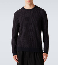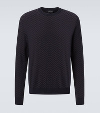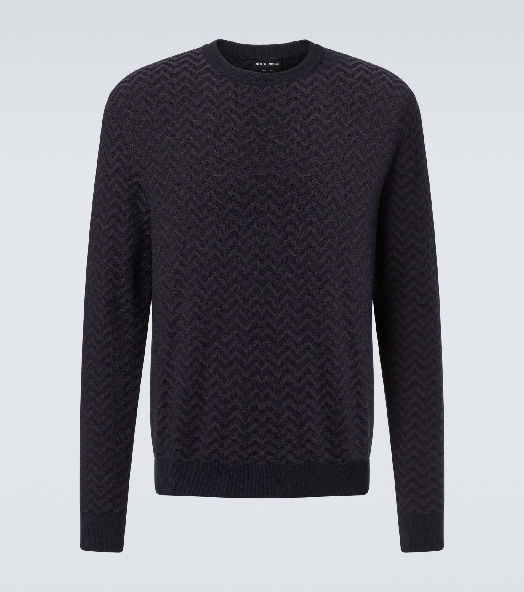 Known for its streamlined modernity, Giorgio Armani presents an elegant take on classic silhouettes, as seen in this sweater. The crewneck style is spun from a wool blend and features a zig zag pattern all over. Product Details - Material: 94% wool, 6% polyester - Care instructions: hand wash - Made in Italy - Designer color name: Blue/Brown - Item color: blue, brown - Collar: crewneck - Cuff: ribbed - Hem: ribbed - Item number: P01047849 Size & Fit - True to size - Straight fit - Stretchy fabric - Falls to the hip - The model in the picture is 185cm-6'1" and wearing a size IT 50