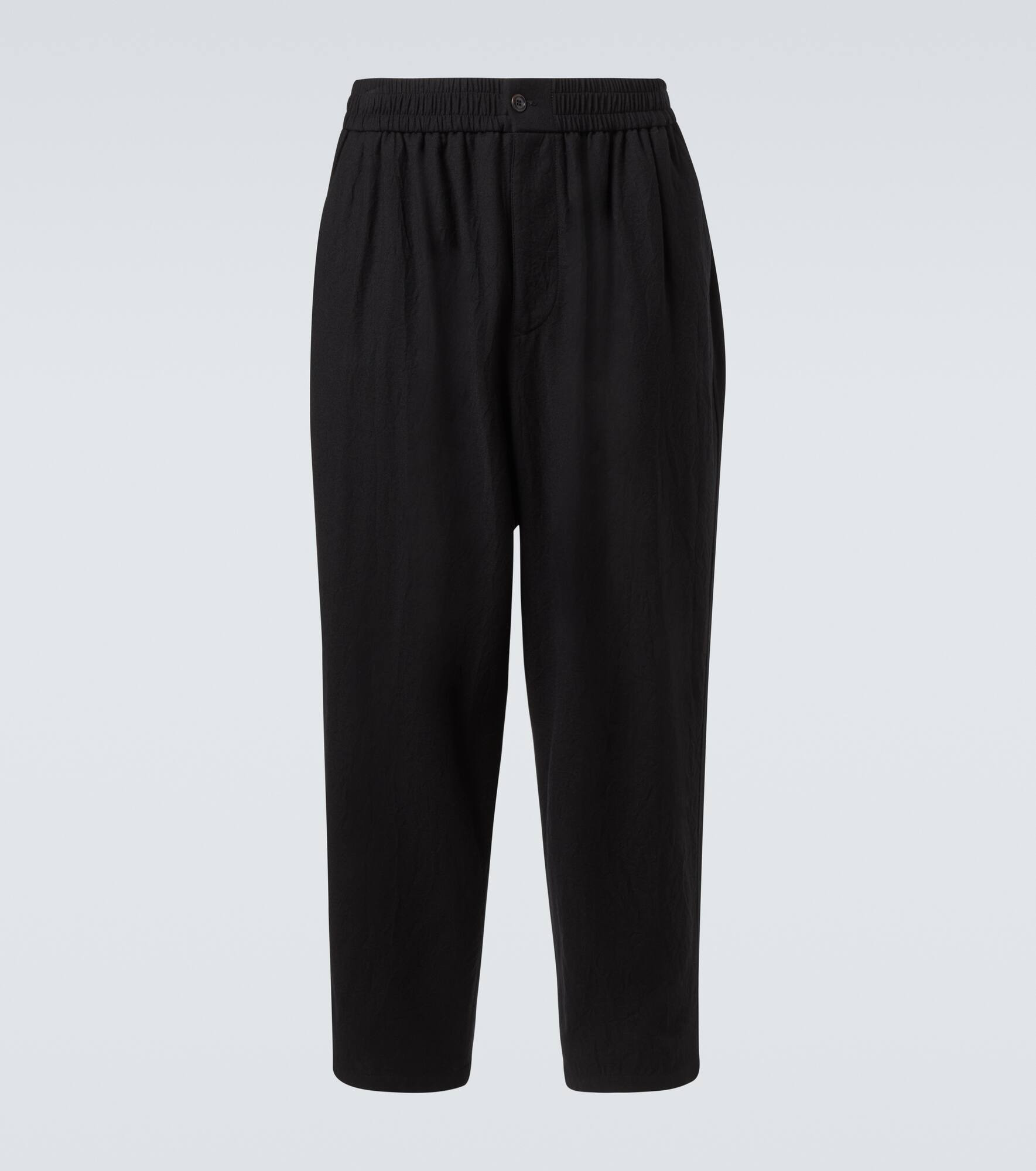 Known for its streamlined modernity, Giorgio Armani presents an elegant take on classic silhouettes and immaculate suiting. Crafted in Italy from virgin wool, these straight pants feature slant pockets and an elasticated waistband. Product Details - Material: 100% virgin wool - Care instructions: dry clean - Made in Italy - Designer color name: Black Beauty - Item color: black - Lining: 100% cotton - Contains non-textile parts of animal origin - Closure: zip and button fastening - Elasticated waistband - Pockets: slant pockets, back pockets - Item number: P01047866 Size & Fit - True to size - Elasticated waist - Non-stretchy fabric - Straight leg - The model in the picture is 185cm-6'1" and wearing a size 50