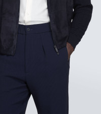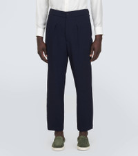 Product Details - Material: 50% wool, 50% viscose - Care instructions: dry clean - Made in Italy - Designer color name: Night Sky - Lining: 63% acetate, 37% viscose - Pockets: side slit pockets, back pockets - Closure: zipper fly, button fastening - Elasticated waistband - Item number: P00938623 Size & Fit - True to size - Elasticated waist - Non-stretchy fabric - Straight leg - The model in the picture is 185cm-6'1" and wearing a size 48