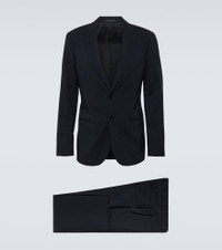Known for its streamlined modernity, Giorgio Armani presents an elegant take on classic silhouettes and immaculate suiting. This blazer and pants set is crafted entirely from dark blue wool and features classic notched lapels. Product Details - Lining II: 60% acetate, 40% cupro - Made in Italy - Designer color name: Dark Navy - Contains non-textile parts of animal origin - Material: 100% virgin wool - Pockets: welt pockets, internal pockets - Lining: 100% cupro - Closure: zipper fly, button fastening - Item number: P00858837 Size & Fit - True to size - For broader shoulders we recommend taking one size up - Slim fit - Mid-weight material - Falls below the hip - Slim-leg - Unhemmed for tailoring - The model in the picture is 185cm-6'1" and wearing a size IT 48