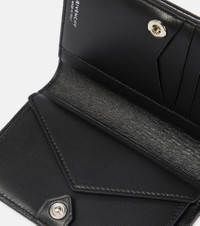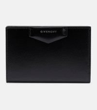 The Antigona bifold wallet from Givenchy is made from calfskin leather and has a secure snap button closure. Functional yet sleek, the compact design has multiple card slots and a coin pocket. Product Details - Closure: snap-buttoned fastening - Color of fastening: silver - Internal details: Card slots, bill slot, leather lining, snap-buttoned coin pocket - Material: calf leather - Comes with a box, Comes with dust bag, Contains non-textile parts of animal origin - Made in Italy - Item number: P00754637 Size & Fit - Height 9cm-3.5" - Width 13,5cm-5.5" - Depth 2cm-1"