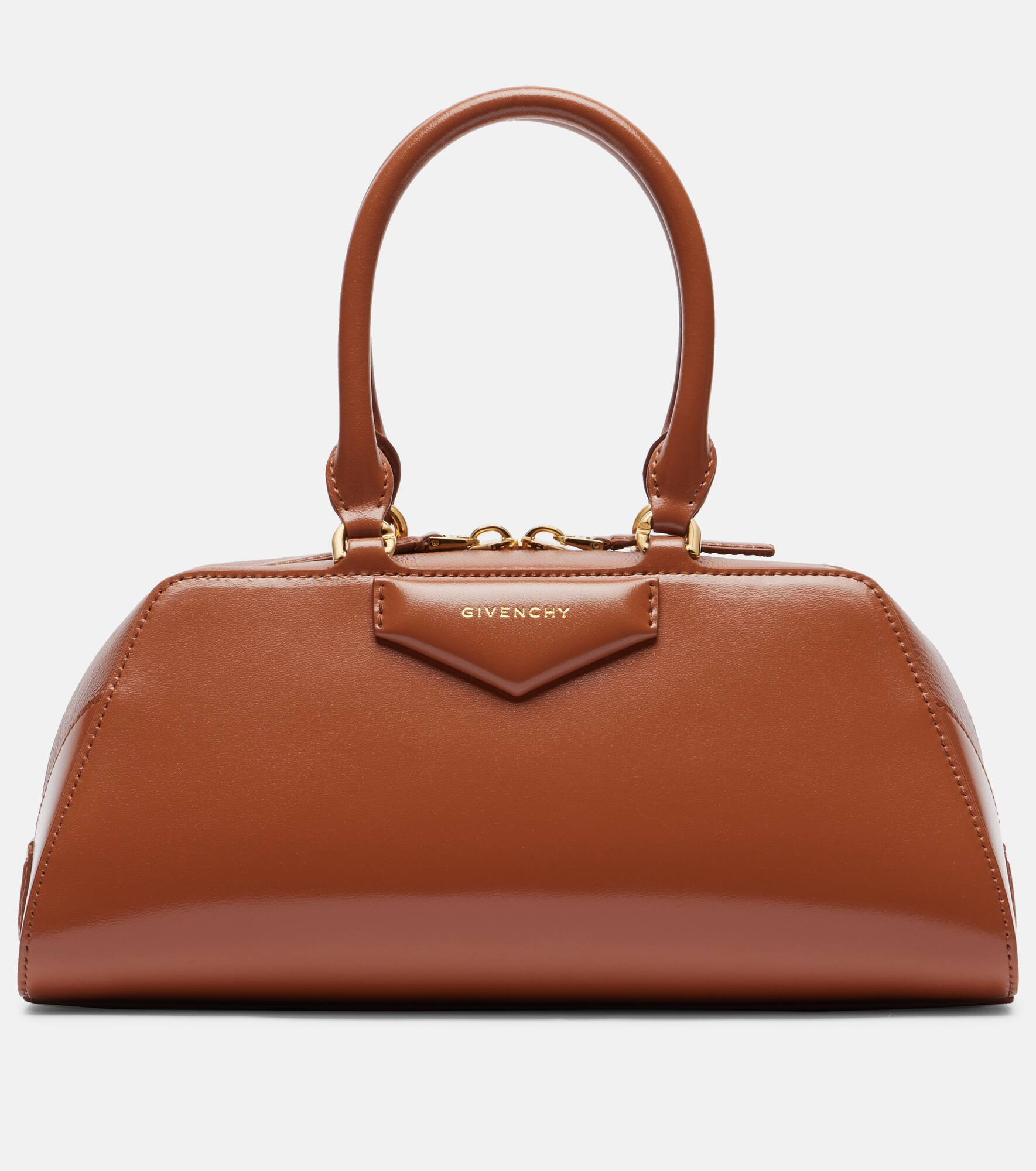 Givenchy revolutionized fashion with easy, elegant, architectural separates – destined to be worn day to night. Made in Italy from brown leather, the Antigona Small shoulder bag has a classic east-west silhouette with gold-toned hardware and a detachable strap. Product Details - Material: calf leather - Lining: fabric - Made in Italy - Designer color name: Caramel Brown - Item color: brown - Hardware color: gold - Top handles, Detachable, adjustable shoulder strap - Internal details: internal slot pocket, single compartment - Closure: two-way zipped top - Includes: dust bag - Item number: P01082475 Size & Fit - Height 13cm-5" - Width 27,5cm-11" - Depth 14cm-5.5" - Length of handles 34cm-13.5" - Adjustable shoulder strap - Max. length shoulder strap 120cm-47"