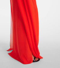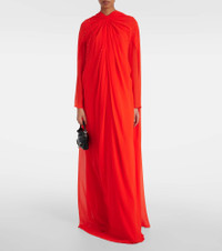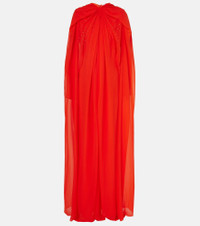EVENING CAPE DRESS IN SILK GEORGETTE WITH PEARLS