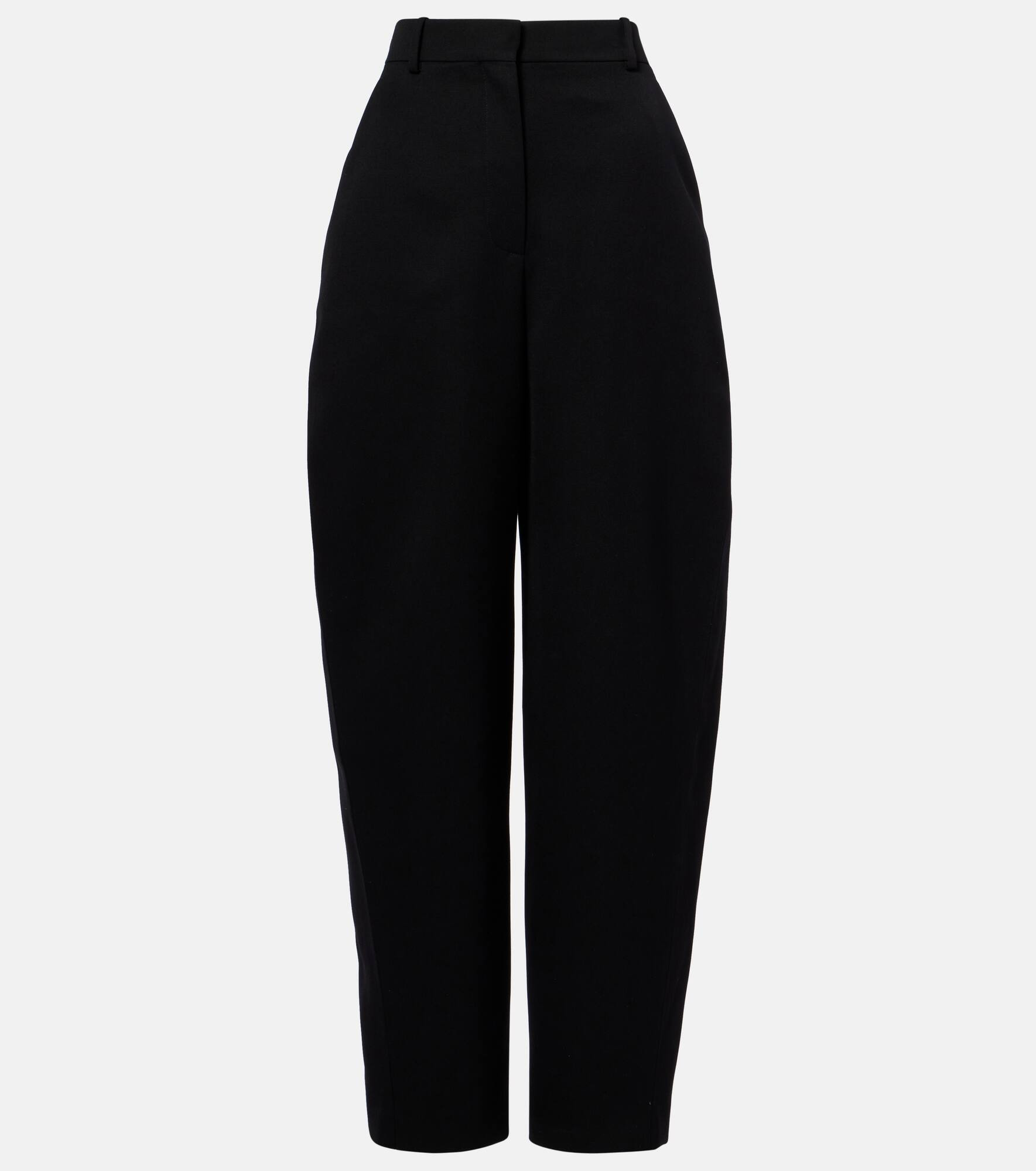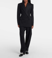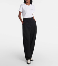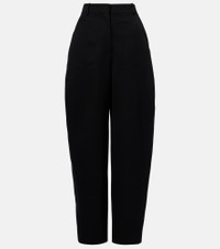 Givenchy's precise and timeless tailoring is inspired by the elegant silhouettes of the brand’s early years. The Cocoon pants are made in Italy with wool grain de poudre and feature a wide-leg, high-rise silhouette. Product Details - Material: 100% wool - Care instructions: dry clean - Made in Italy - Designer color name: Black - Item color: black - Closure: zip, hook, and button fastening - Pockets: slant pockets, back pocket - Belt loops - Item number: P01080829 Size & Fit - True to size - Non-stretchy fabric - Wide-leg - High-waisted - The model seen in the picture is 178cm-5'10" and wearing a size FR 36