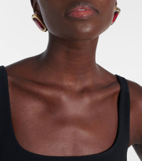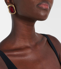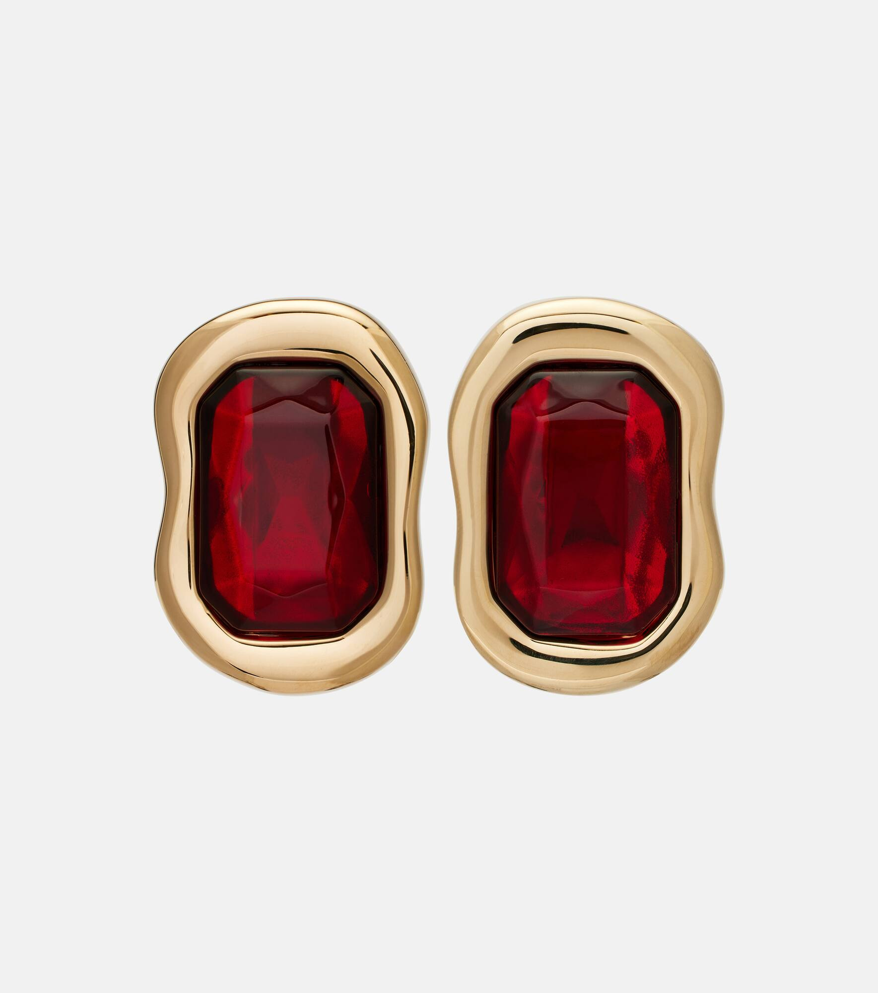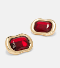 Made in Italy, these earrings feature crystal embellishments set in polished gold-tone brass. The fluid, sculptural frame reflects Givenchy’s bold aesthetic, offering a statement finish with a vintage-inspired edge. Product Details - Material: brass - Made in Italy - Item color: gold, red - Closure: clip-on - Item number: P01102808 Size & Fit - Length 4cm-1.5" - Width 2,5cm-1"