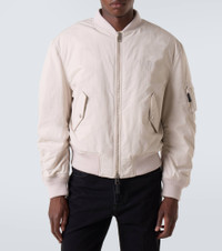 This Givenchy bomber jacket features sharp tailoring with streetwear edge. Crafted from crinkled-effect cotton blend, it features a cocooning silhouette with bias seams, ribbed trims, and the brand's Givenchy Stamp logo embroidered at the chest. Product Details - Material: 51% cotton, 49% polyamide - Care instructions: machine wash at 30 degrees - Made in Portugal - Designer color name: Light Beige - Item color: white - Trim: 51% cotton, 49% polyamide - Lining: 100% cotton - Filling: 100% polyester - Pockets: flap pockets, internal pockets, sleeve pockets - Closure: two-way zipped front - Hem: ribbed - Item number: P01069944 Size & Fit - True to size - Dropped shoulders - Elasticated hem - Oversized - Non-stretchy fabric - Falls to the hip - Height of model is 189cm-74.5" and wears a size IT 50