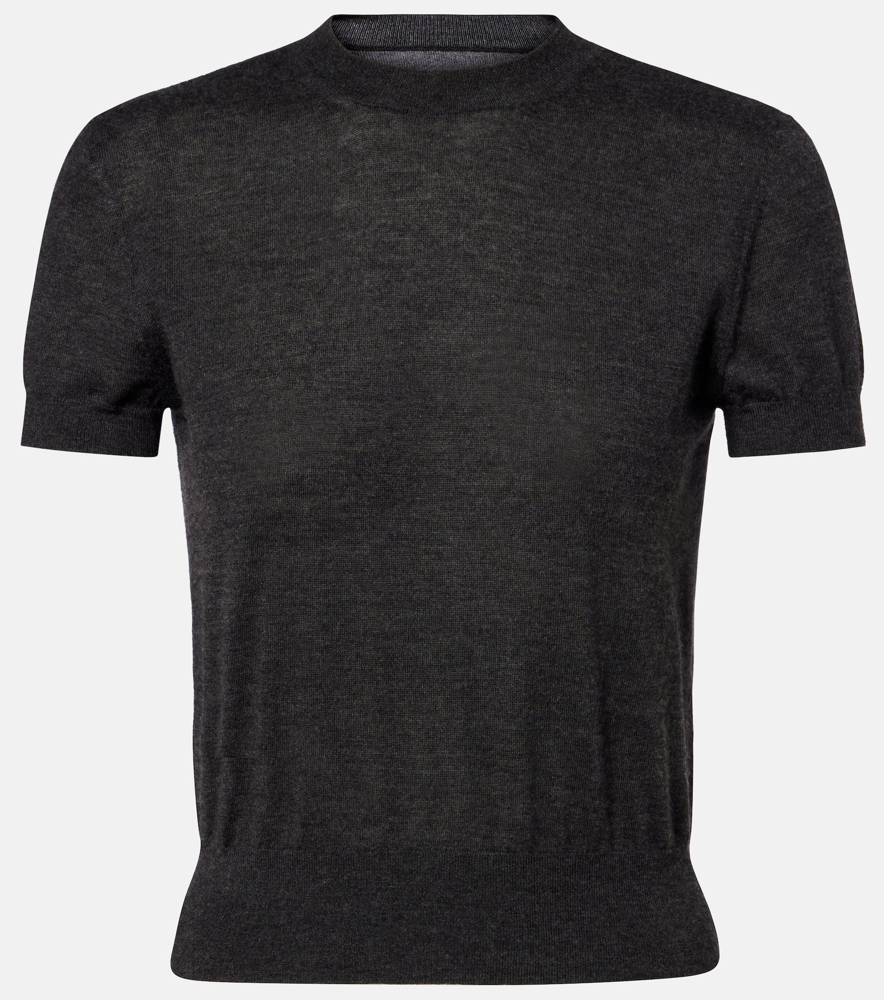 This short-sleeved top from Givenchy is Italian-crafted from fine-gauge cashmere. Featuring ribbed-knit detailing and a semi-sheer finish, the grey style is a timeless staple destined for your forever wardrobe. Product Details - Material: 100% cashmere - Care instructions: dry clean - Made in Italy - Designer color name: Charcoal - Item color: gray - Material II: 91% cashmere, 7% polyamide, 2% elastane - Cuff: ribbed - Hem: ribbed - Item number: P01080664 Size & Fit - True to size - Sheer - Straight fit - Falls to the hip - Height of model is 175cm-69" and wears a size XS
