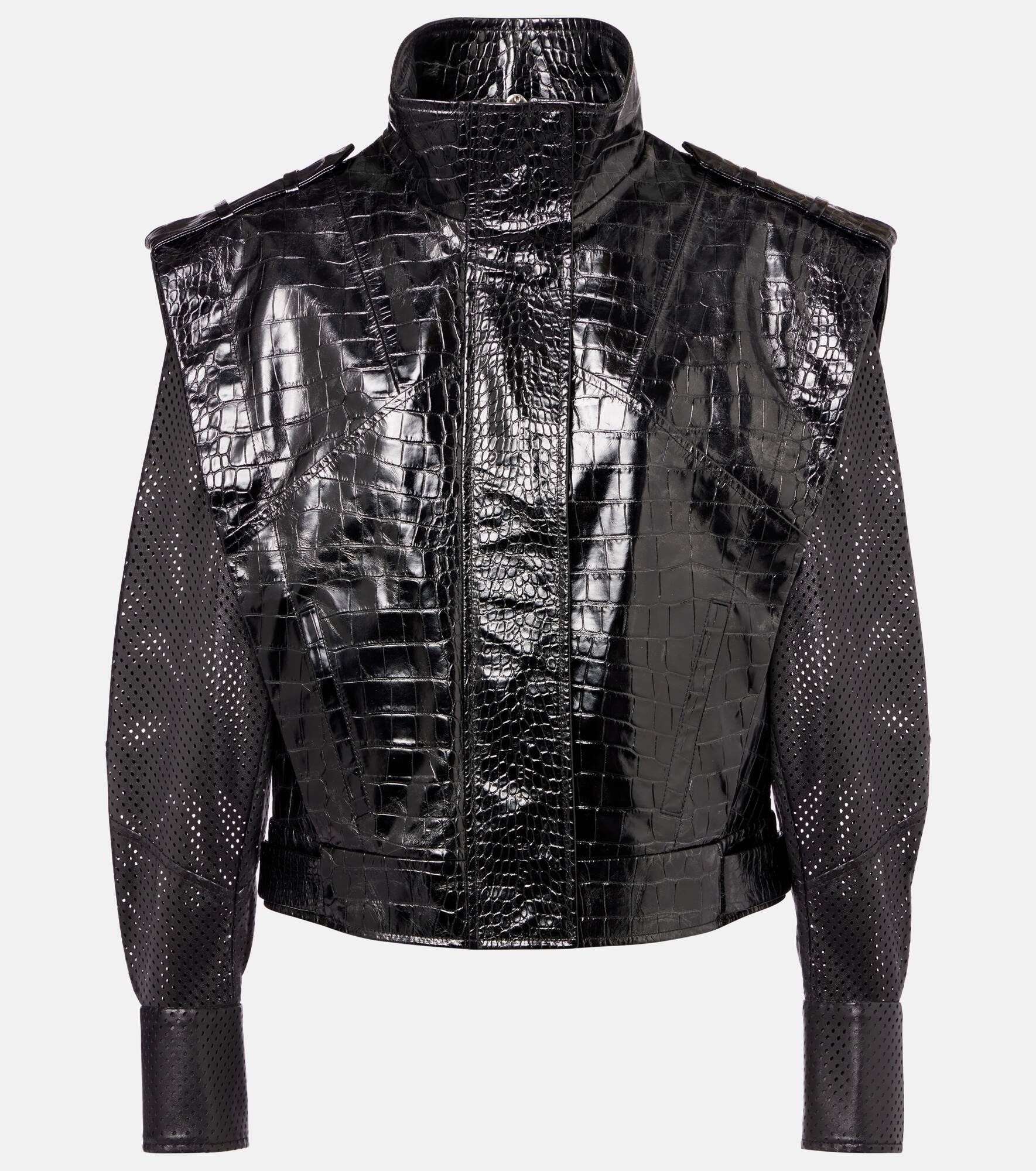 BI-MATERIAL BIKER JACKET IN LEATHER