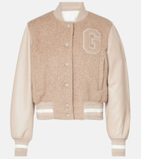 Leather-trimmed alpaca-blend varsity jacket