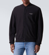 Streamlined modernity defines Givenchy's designs, including this jacket. Made from a soft cotton fabric, the style features a snap-buttoned front, a bomber collar, and logo embroidery on the chest. Product Details - Material: 100% cotton - Care instructions: dry clean - Made in Portugal - Designer color name: Black - Item color: black - Cuff: ribbed - Pockets: buttoned pockets - Closure: snap-buttoned front - Hem: ribbed - Item number: P01125610 Size & Fit - True to size - Dropped shoulders - Straight fit - Elasticated hem - Non-stretchy fabric - Falls to the hip - The model in the picture is 185cm-6'1" and wearing a size L