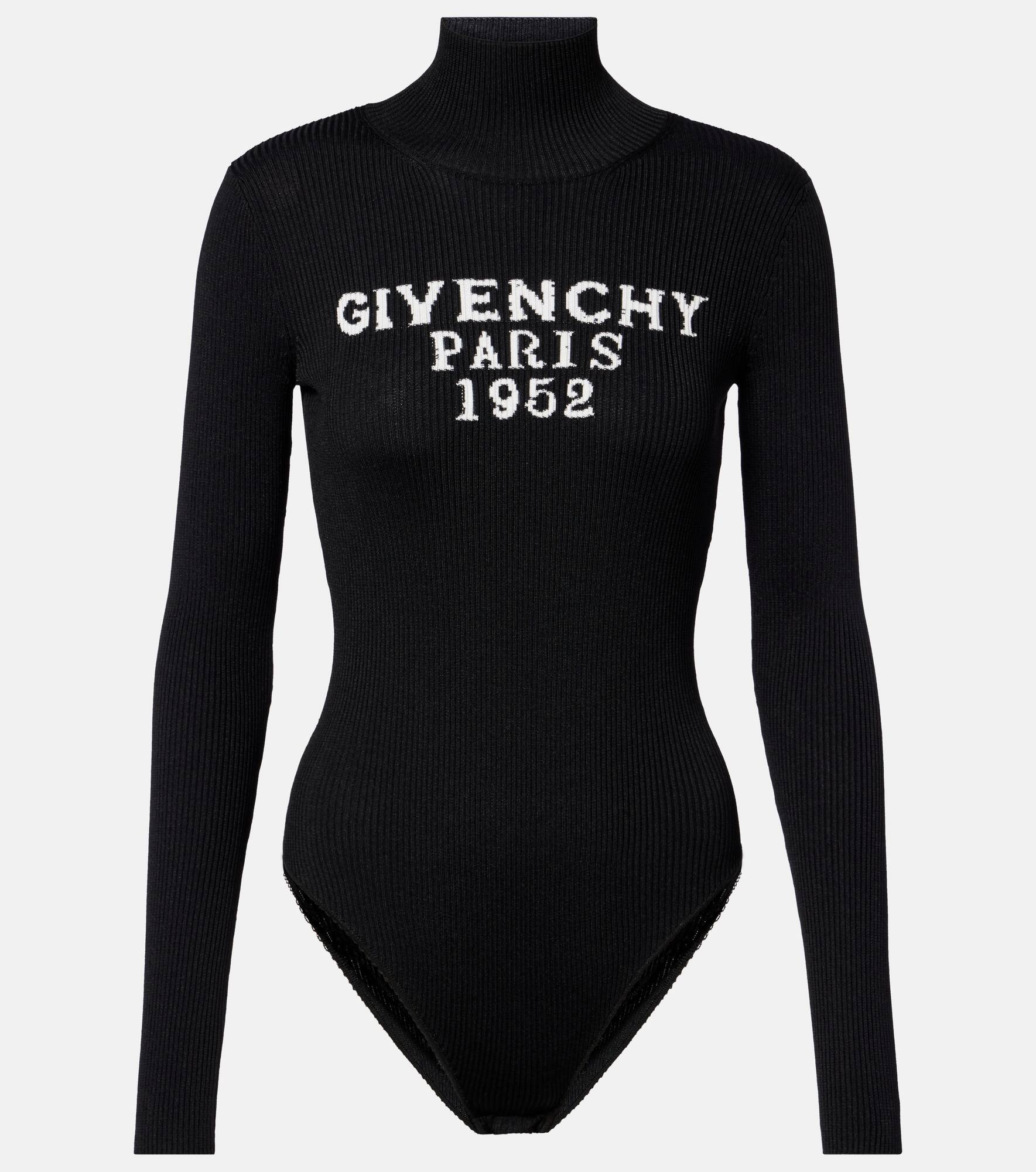 This flattering bodysuit is detailed with contrasting Givenchy lettering at the front. Crafted in a ribbed-knit finish, the turtleneck style is complete with delicate scalloped trims and snap fastenings. Product Details - Material: 100% polyester - Care instructions: dry clean - Made in Italy - Designer color name: Black - Item color: black - Collar: turtleneck - Cuff: elasticated - Closure: snap-buttoned fastenings - Item number: P01081109 Size & Fit - True to size - Petite sizing - Fitted - Stretchy fabric - Medium-cut leg - Height of model is 175cm-69" and wears a size XS