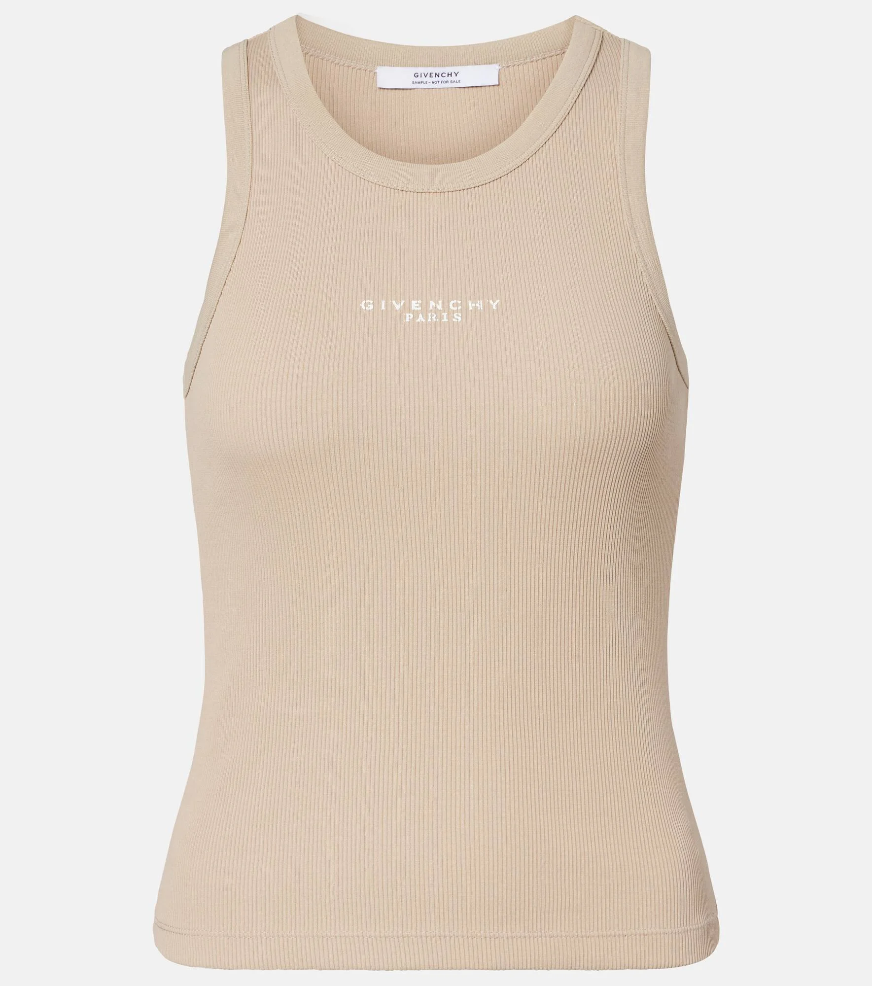 Givenchy revolutionized fashion with easy, elegant, architectural separates – destined to be worn day to night. Made from beige cotton jersey, this tank top is a ribbed-knit piece with the brand's logo at its center. Product Details - Material: 98% cotton, 2% elastane - Care instructions: dry clean - Made in Portugal - Color: beige - Designer color name: Beige Cappuccino - Item color: beige - Item number: P01124977 Size & Fit - True to size - Fitted - Stretchy fabric - Falls to the hip - The model seen in the picture is 178cm-5'10" and wearing a size XS