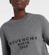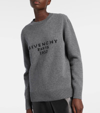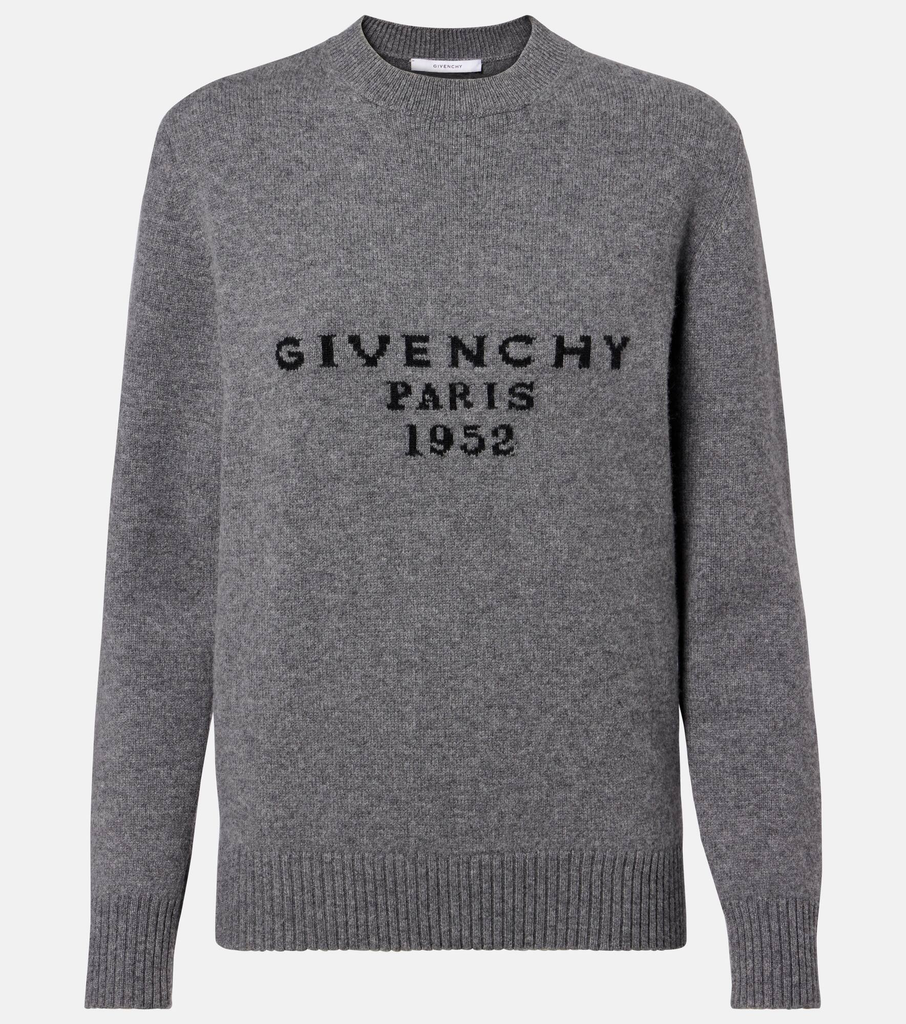 This wool and cashmere sweater is adorned with contrasting Givenchy lettering on the front. Featuring ribbed-knit trims on the collar, cuffs, and hem, the style is primed to become your next wardrobe staple. Product Details - Material: 70% wool, 30% cashmere - Care instructions: dry clean - Made in Italy - Designer color name: Slate Blend - Item color: gray - Cuff: ribbed - Hem: ribbed - Item number: P01081129 Size & Fit - True to size - Dropped shoulders - Straight fit - Falls below the hip - Height of model is 175cm-69" and wears a size XS