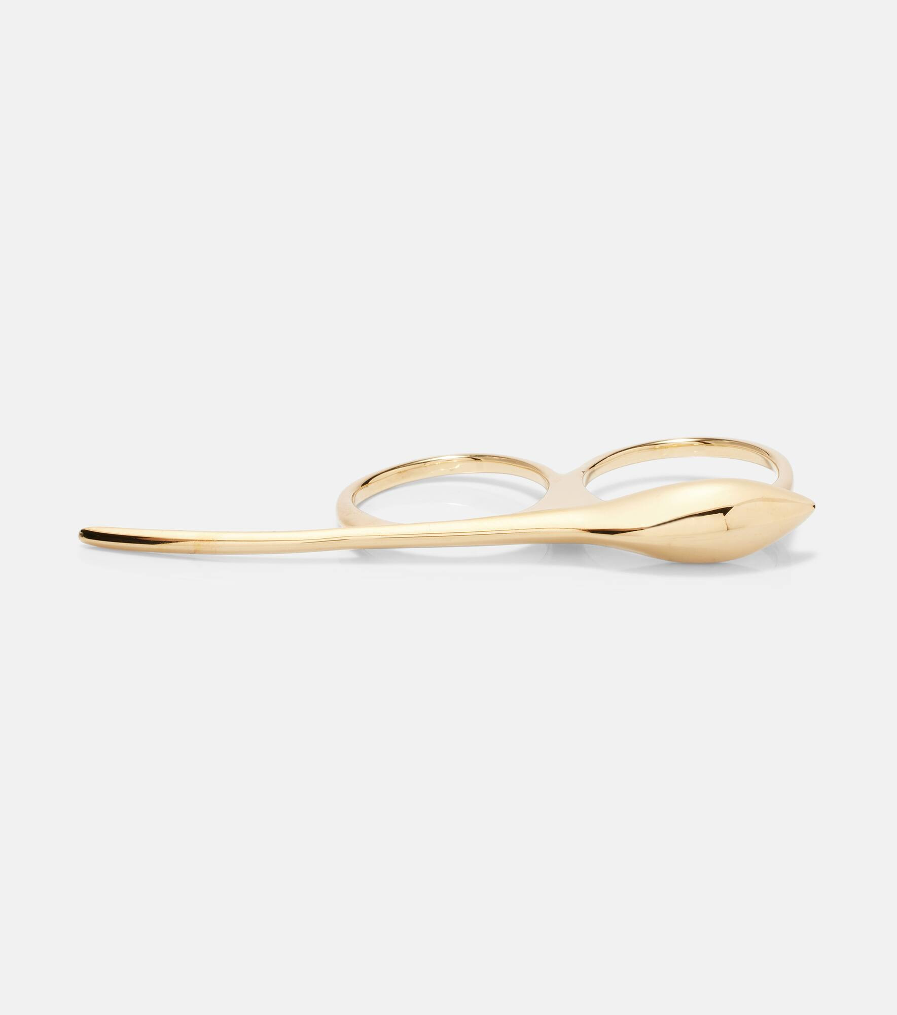Crafted in Italy from brass, the Maple Seed ring from Givenchy features a distinctive style. This design's sculptural shape and gold-toned appearance create a touch of understated sophistication. Product Details - Material: brass - Made in Italy - Item color: gold - Includes: dust bag, box - Item number: P01086103 Size & Fit - Length 6,5cm-2.5" - Max. width 0,5cm-0"