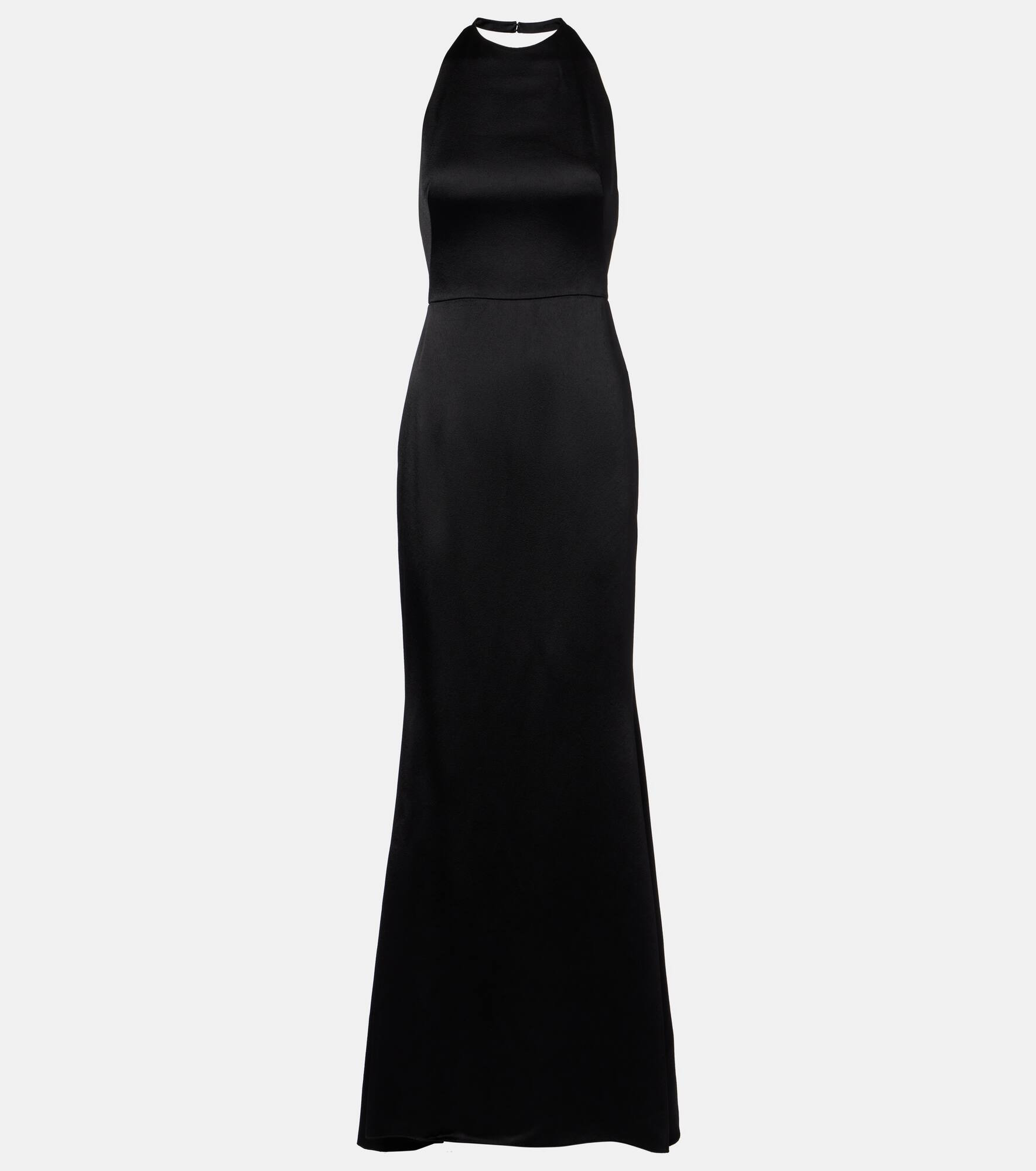 Givenchy's timeless tailoring echoes the elegant silhouettes of the brand’s early years. Crafted from crepe and satin, this gown is designed with a halter neckline and an alluring open back. Product Details - Material: 52% viscose, 48% acetate - Care instructions: dry clean - Made in Italy - Designer color name: Black - Item color: black - Lining: 52% viscose, 48% acetate - Lining II: 75% acetate, 25% silk - Closure: zipped back - Item number: P01080853 Size & Fit - True to size - Low back - Cinched waist - Non-stretchy fabric - Height of model is 175cm-69" and wears a size FR 36