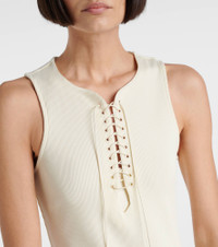 This dress from Givenchy is made from cotton with a hint of stretch. The midi-length design is rib-knitted for a close fit, with lace-up fastening on the front for a flattering finish. Product Details - Material: 98% cotton, 2% elastane - Care instructions: dry clean - Made in Portugal - Designer color name: Natural - Item color: white - Item number: P01032082 Size & Fit - True to size - Fitted - Stretchy fabric - The model seen in the picture is 178cm-5'10" and wearing a size XS