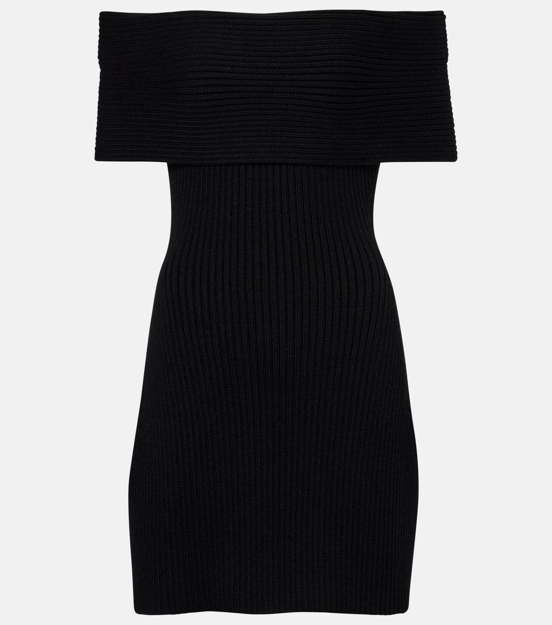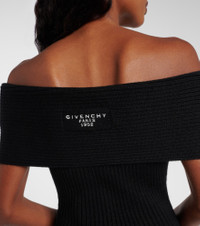 Givenchy's precise and timeless craftsmanship echoes the elegant silhouettes of the brand’s early years. This minidress is made from a soft wool and alpaca blend and features a ribbed-knit finish and an off-shoulder neckline. Product Details - Material: 76% wool, 22% alpaca wool, 1% polyamide, 1% elastane - Care instructions: dry clean - Made in Italy - Designer color name: Black - Item color: black - Item number: P01081204 Size & Fit - True to size - Off-the-shoulder - Fitted - Stretchy fabric - The model seen in the picture is 178cm-5'10" and wearing a size XS