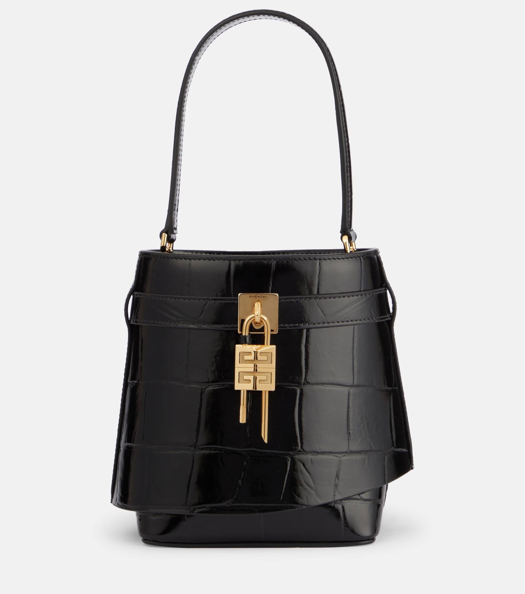 Product Details - Material: leather - Lining: leather - Made in Italy - Designer color name: 001-Black - Detachable top handle, Detachable, adjustable shoulder strap - Closure: open top - Internal details: internal slot pocket - Hardware color: gold - Includes: dust bag - Item number: P00999904 Size & Fit - Height 18cm-7" - Min. width 15cm-6" - Max. width 20cm-8" - Depth 10cm-4" - Length of handle 35cm-14" - Min. length shoulder strap 104cm-41" - Max. length shoulder strap 116cm-45.5" - Suitable for large smartphones (e.g. iPhone 12 Pro Max / Samsung Galaxy A72, S21 Ultra/ Huawei P40 Pro, Mate 40 pro)
