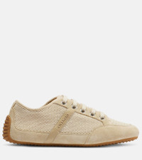 Leather and suede-trimmed mesh sneakers Beige
