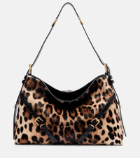 The Voyou Medium shoulder bag from Givenchy features a charming V-shaped silhouette with a detachable shoulder strap. The chic design is complete with an all-over leopard print and the brand's logo at the front. Product Details - Material: goat leather - Lining: suede - Made in Italy - Designer color name: Black/Beige - Item color: beige, black - Internal details: internal zipped pocket - Detachable, adjustable shoulder strap - Hardware color: gold - Trim: leather - Item number: P01055949 Size & Fit - Max. height 29cm-11.5" - Min. width 33cm-13" - Max. width 38cm-15" - Depth 11cm-4.5" - Min. length shoulder strap 30cm-12" - Max. length shoulder strap 93cm-36.5"