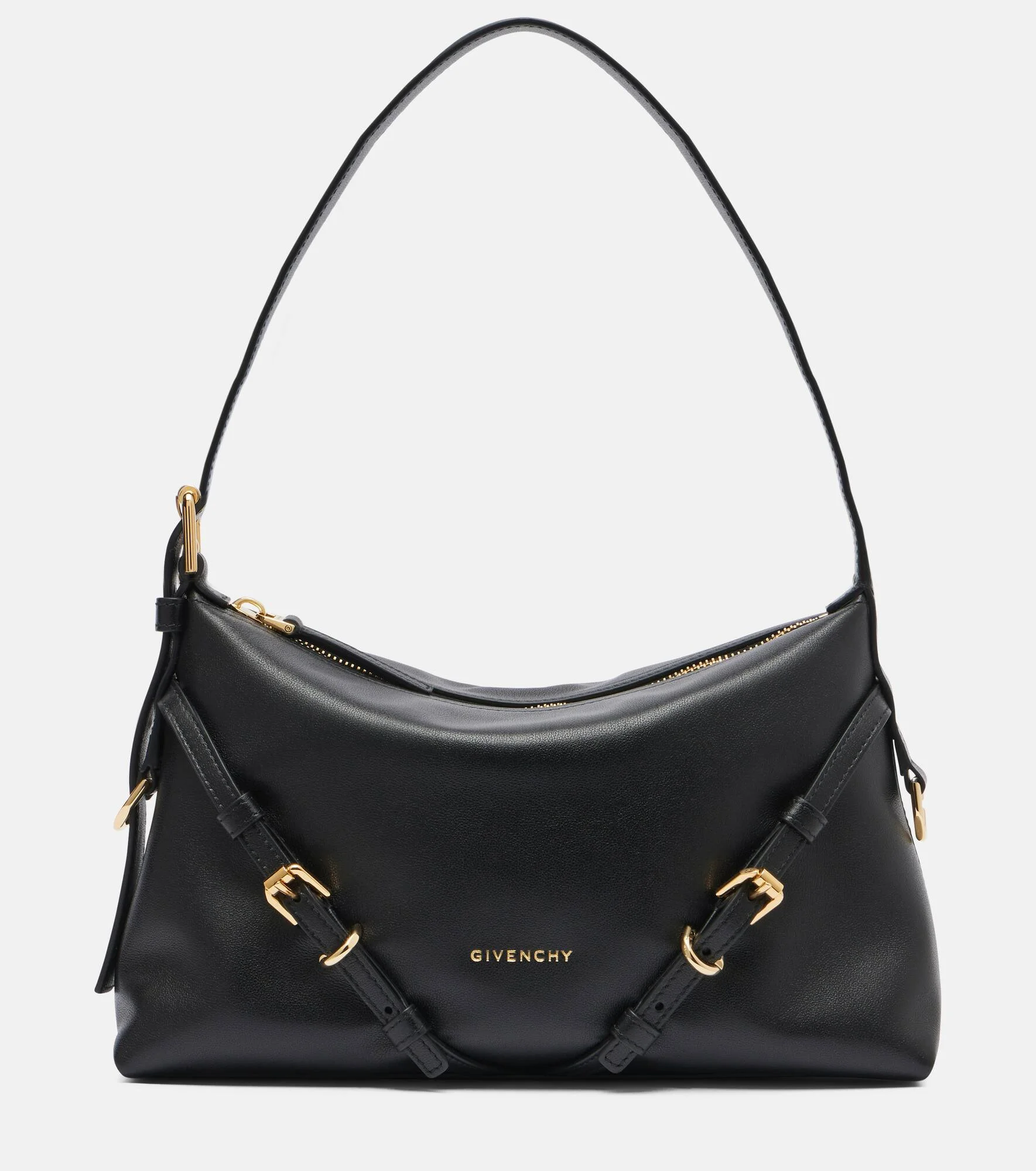 Givenchy's Voyou Mini shoulder bag is a statement style made from soft leather to a slouchy silhouette. This sophisticated accessory features gold-toned hardware and an adjustable shoulder strap. Product Details - Material: calf leather - Lining: fabric - Made in Italy - Designer color name: Black - Item color: black - Closure: zipped top - Adjustable shoulder strap - Hardware color: gold - Item number: P01082479 Size & Fit - Height 17cm-6.5" - Width 29cm-11.5" - Depth 8cm-3" - Length of handles 58cm-23"