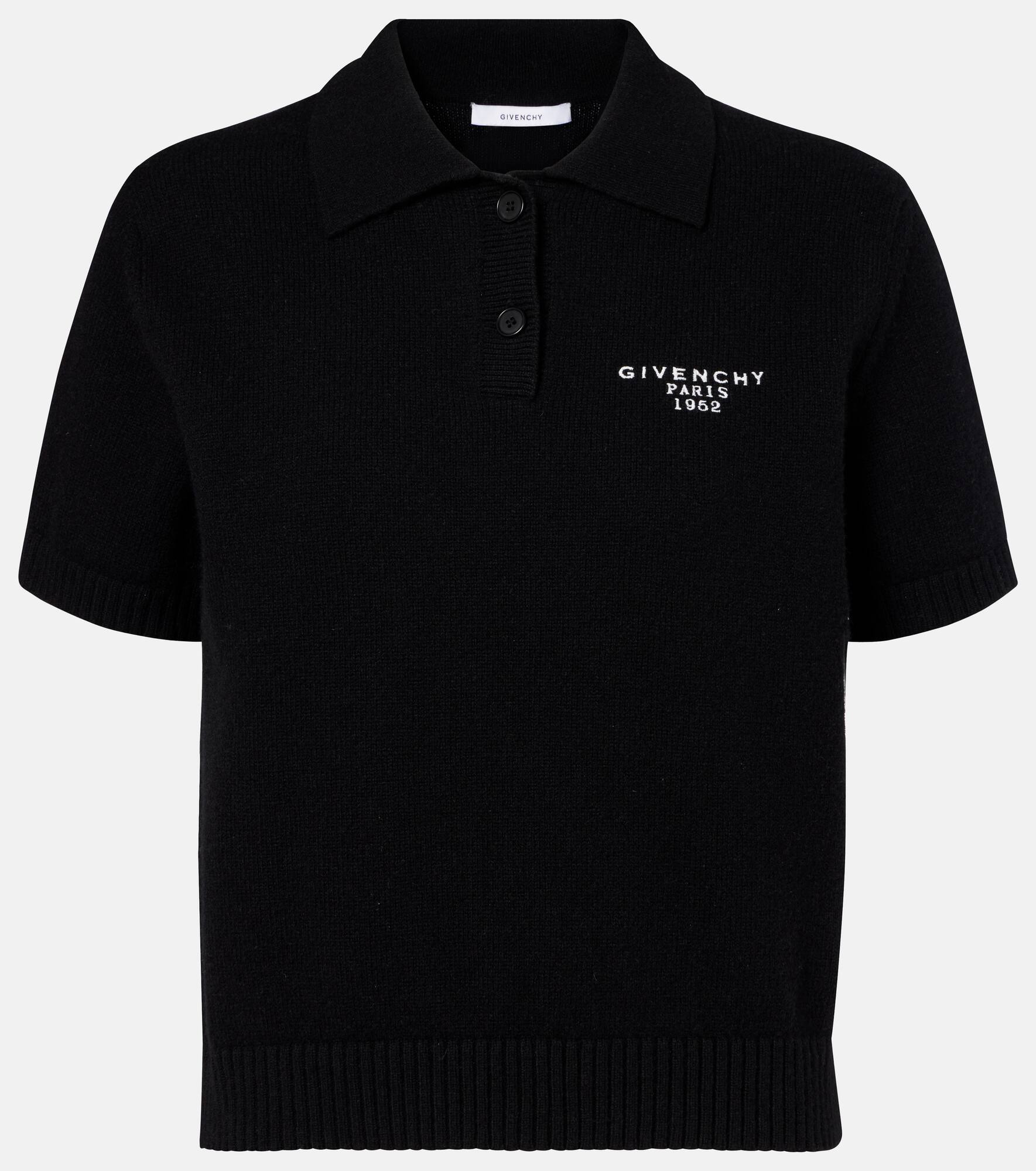 This preppy polo sweater from Givenchy is a timeless staple destined for your forever wardrobe. Knitted from a fine blend of wool and cashmere, the short-sleeved style features a logo embroidery at the chest and ribbed detailing. Product Details - Material: 70% wool, 30% cashmere - Care instructions: dry clean - Made in Italy - Designer color name: Black - Item color: black - Collar: polo collar - Closure: partially buttoned front - Item number: P01081106 Size & Fit - True to size - Dropped shoulders - Designed for a loose fit - Slightly stretchy fabric - Falls to the hip - Height of model is 175cm-69" and wears a size XS