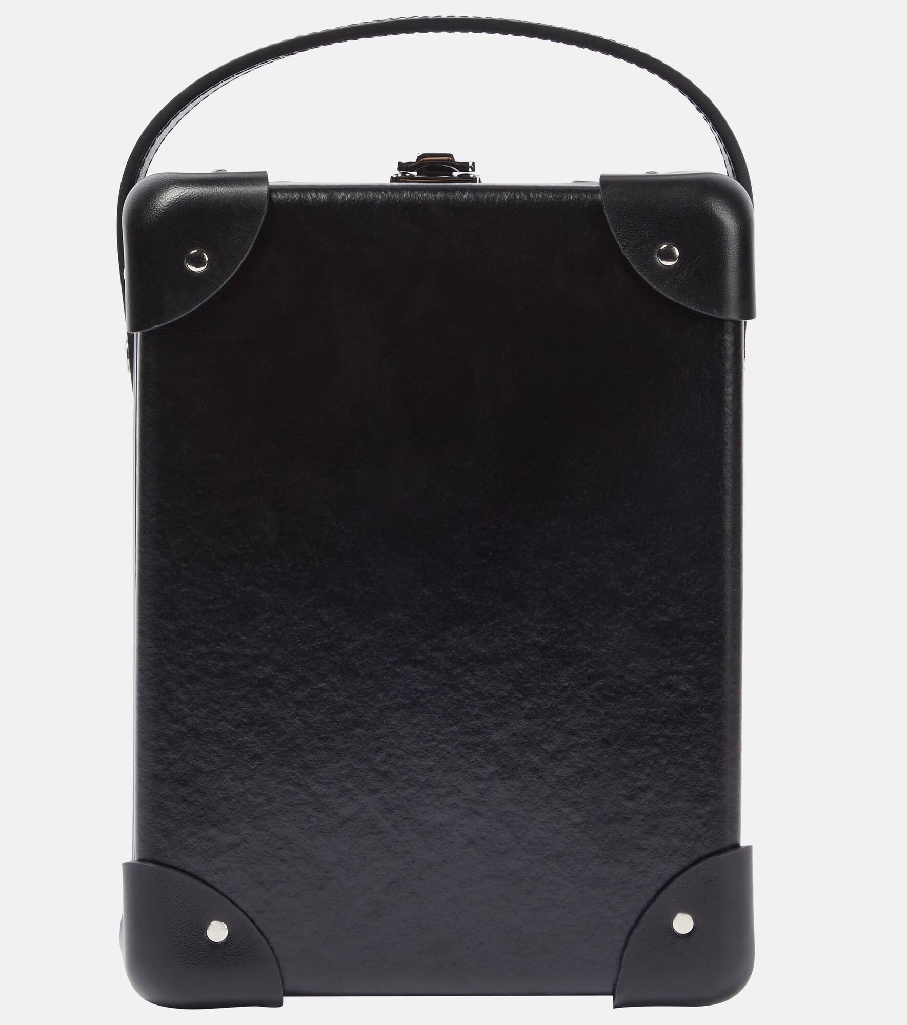 Globe-Trotter's Centenary collection commemorates a hundred years of luggage craftsmanship. Designed for frequent travelers, this watch case has compartments for three timepieces and is made from patented vulcanized fiberboard with leather trims. Product Details - Closure: push-lock fastening - Designer color name: Black Chrome - Made in the UK - Top handles - Trim: leather - Item number: P00768050 Size & Fit - Height 26cm-10" - Width 17cm-6.5" - Depth 9cm-3.5" - Length of handle 22cm-8.5"