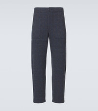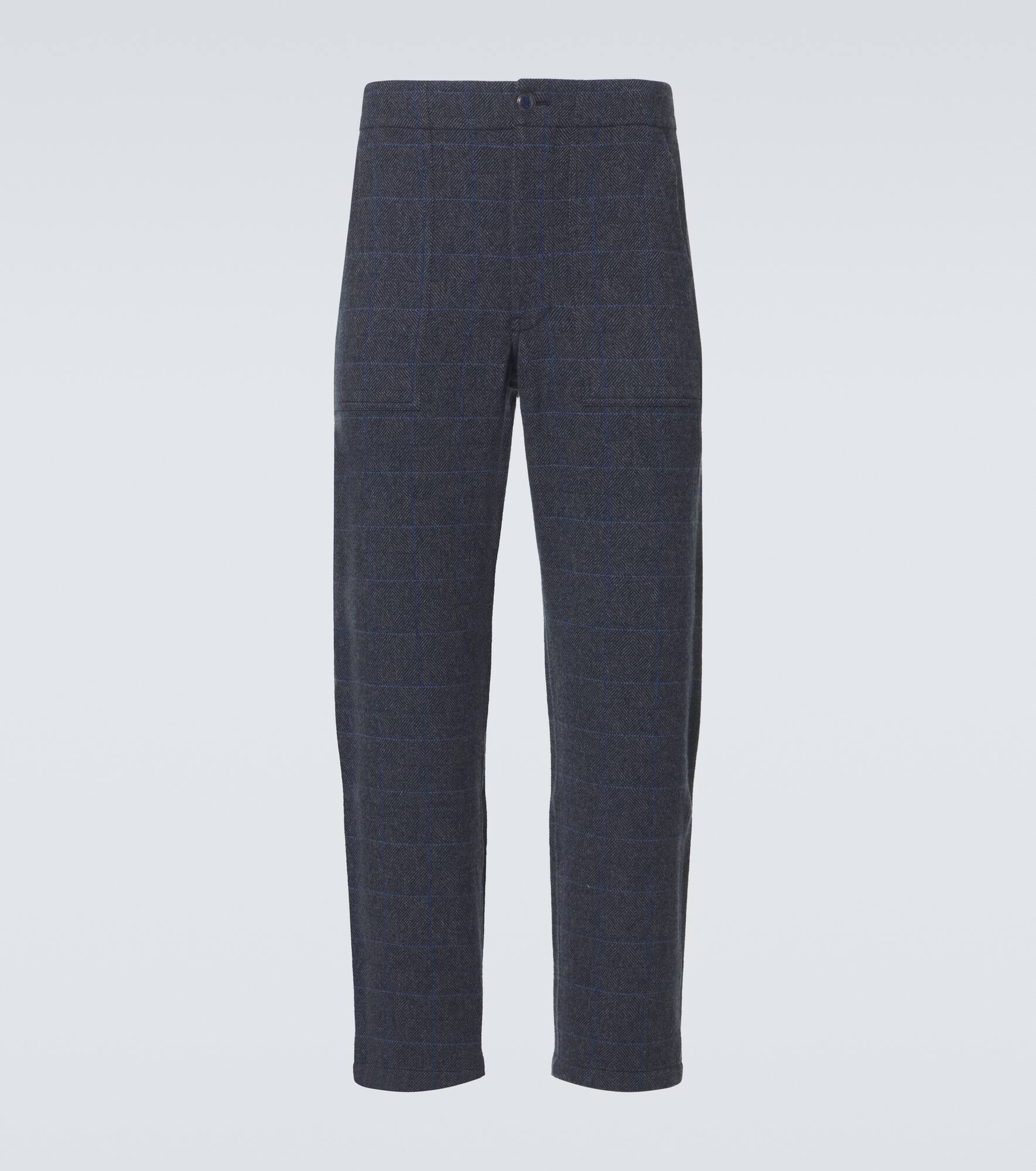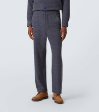 Herringbone checked cashmere straight pants