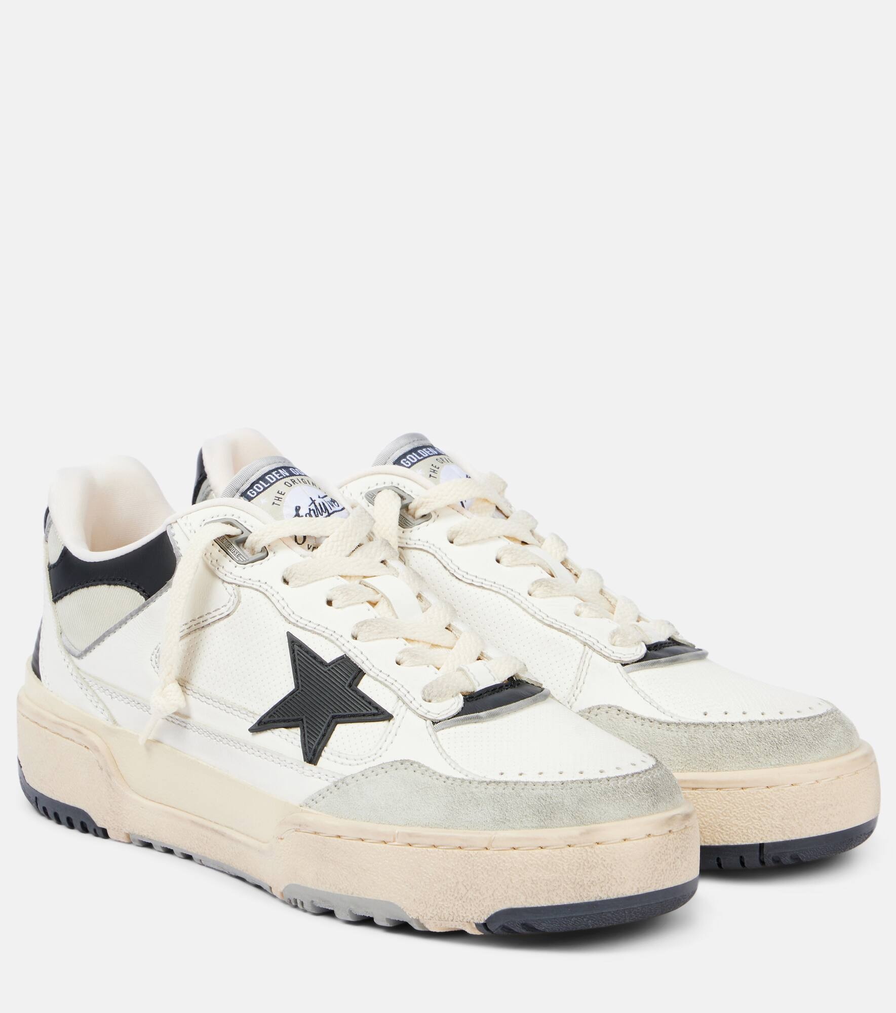 Handmade by skilled artisans in the brand’s Venetian ateliers, the Golden Goose label is a mark of exceptional Italian craftsmanship. The Ball Star sneakers are made from white suede with the brand's iconic star logo on the sides. Product Details - Upper: fabric - Lining: fabric - Sole: leather insole, rubber sole - Toe shape: round toe - Made in Italy - Includes: shoe box, dust bag - Designer color name: White/Black/Beige - Item color: white, beige - Closure: lace-up - Item number: P01056984 Size & Fit - True to size - Half sizes please take the next size up - European sizes - 3,5cm-1.5" platform (size EU 38) - 4cm-1.5" wedge heel (size EU 38)