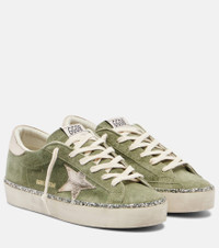 Handcrafted by skilled artisans in Italy, Golden Goose's ethos of "Perfect Imperfection" ensures that no two shoes are exactly the same. Made from green suede with metallic leather trims, the Hi Star sneakers are characterized by glitter embellishments atop the white rubber soles. Product Details - Upper: leather (suede) - Lining: leather, fabric - Sole: leather insole, rubber sole - Color: green - Toe shape: round toe - Made in Italy - Includes: shoe box, dust bag - Designer color name: Military Green/Platinum - Trim: leather - Closure: lace-up - Item number: P01132977 Size & Fit - True to size - Half sizes please take the next size up - European sizes