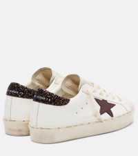Handmade by skilled artisans in the brand’s Venetian ateliers, the Golden Goose label is a mark of exceptional Italian craftsmanship. The Hi Star sneakers are crafted from leather with signature star-shaped trims and glitter heel tabs. Product Details - Upper: leather, fabric - Lining: fabric - Sole: rubber insole and sole - Toe shape: round toe - Made in Italy - Includes: shoe box - Designer color name: White/Grey/Purple/Brown - Item color: white, beige, brown - Item number: P01056994 Size & Fit - True to size - Half sizes please take the next size up - European sizes - 2,5cm-1" platform (size EU 38) - 4cm-1.5" wedge heel (size EU 38)