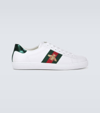 Crafted in Italy, Gucci's classic low-top sneakers in white are accented by the house's embroidered bee and provide ultimate comfort, with a relaxed fit. Product Details - Sole: leather insole, rubber sole - Toe shape: round toe - Upper: calf leather - Lining: calf leather - Closure: lace-up - Made in Italy - Item number: P00491646 Size & Fit - True to size - Half sizes please take the next size down - UK sizes