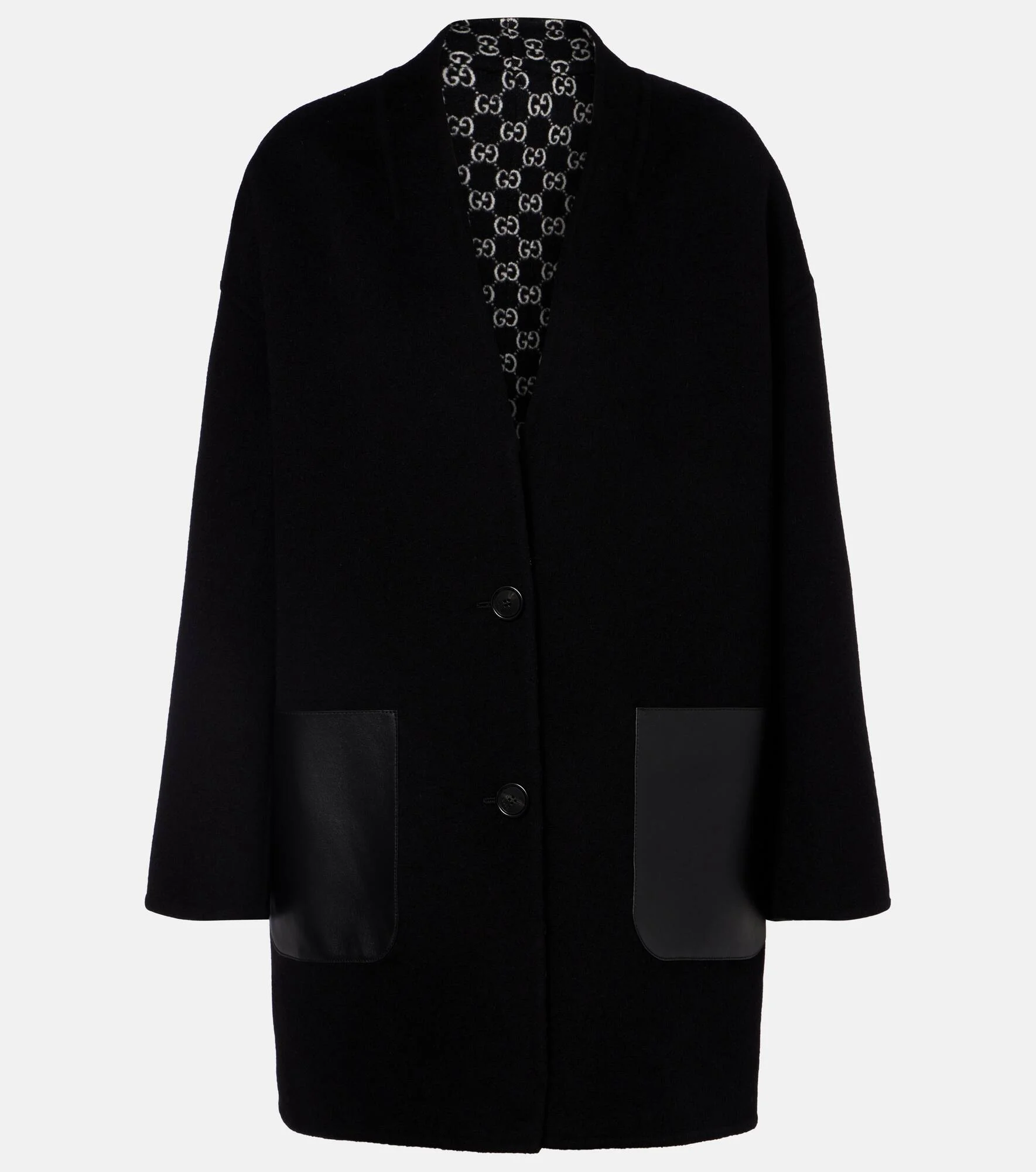 Take on brisk weather in style with the Caban coat from Gucci. The reversible style is crafted from wool and is complete with tonal leather patch pockets. Product Details - Material: 99% wool, 1% silk - Care instructions: dry clean - Made in Italy - Designer color name: Black/White - Item color: black - Pocket lining: 100% viscose - Details: 100% lamb leather - Contains non-textile parts of animal origin - Pockets: patch pockets, internal pocket - Closure: single-breasted (two buttons) - Item number: P01119055 Size & Fit - True to size - Dropped shoulders - Designed for a loose fit - Non-stretchy fabric - The model seen in the picture is 178cm-5'10" and wearing a size IT 40
