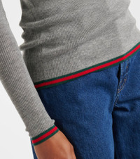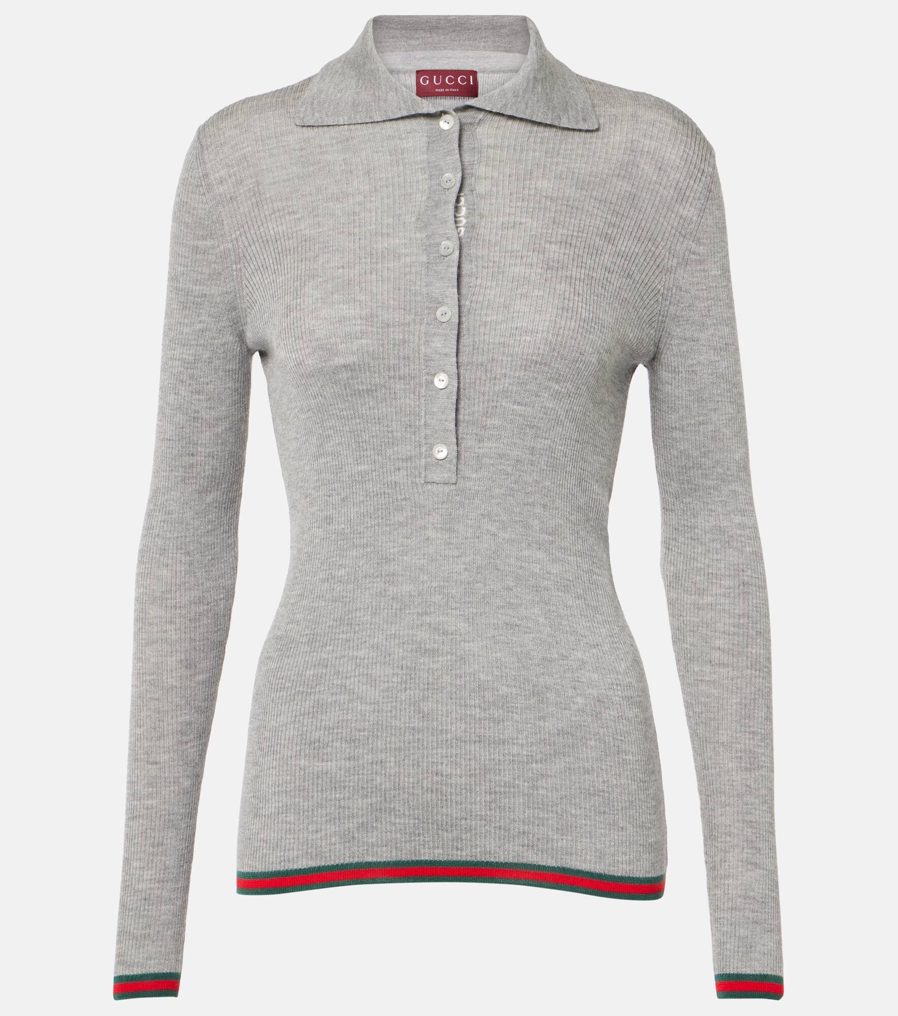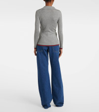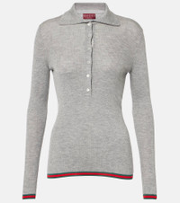 Striped ribbed cashmere and silk-blend polo shirt Light gray