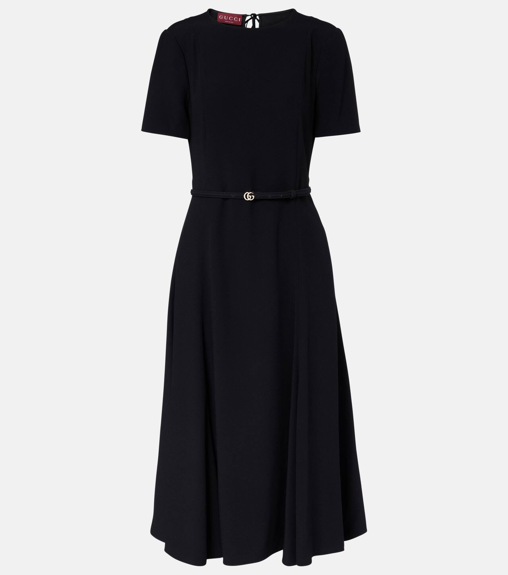 Gucci’s midi dress is made in Italy with a zipped side and buttoned back. Designed with side slit pockets, the silhouette is finished with a signature Double G detail at the detachable leather belt. Product Details - Material: 77% acetate, 23% viscose - Care instructions: dry clean - Made in Italy - Designer color name: Black - Item color: black - Lining: 75% acetate, 25% viscose - Insert: 100% cow leather - Contains non-textile parts of animal origin - Closure: zipped side, buttoned back - Pockets: side slit pockets - Detachable belt - Item number: P01052671 Size & Fit - True to size - Cinched waist - Non-stretchy fabric - The model seen in the picture is 178cm-5'10" and wearing a size IT 40