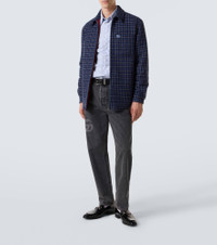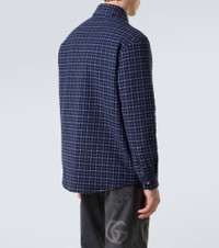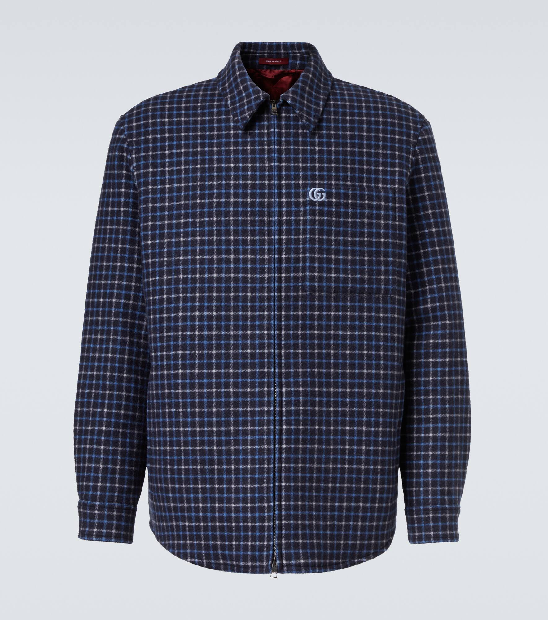 This Gucci overshirt elevates your casualwear collection with its signature detailing. Crafted from a soft wool blend, the design features a zip fastening and boasts a checked motif finished with the iconic Double G embroidery. Product Details - Material: 80% wool, 20% polyamide - Care instructions: dry clean - Made in Italy - Designer color name: Blue\White\Mc - Item color: blue, white - Lining: 100% viscose - Pocket lining: 100% cotton - Filling: 100% polyester - Embroidery: 100% polyester - Collar: classic (Straight point) - Closure: zipped front - Pockets: slit pockets, internal pocket, angled chest pocket - Cuff: buttoned - Item number: P01050992 Size & Fit - True to size - Designed for a loose fit - Non-stretchy fabric - Falls below the hip - Height of model is 189cm-74.5" and wears a size IT 48
