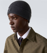 Gucci’s beanie is made in Italy from ribbed-knit cashmere and finished with a leather Double G logo patch. The timeless silhouette blends casual utility with a subtle nod to the house’s signature heritage. Product Details - Material: 100% cashmere - Care instructions: dry clean - Made in Italy - Designer color name: Flannel - Item color: gray - Trim: 100% calf leather - Item number: P01051021 Size & Fit - Adjustable size - Circumference size S 57cm-22.5"