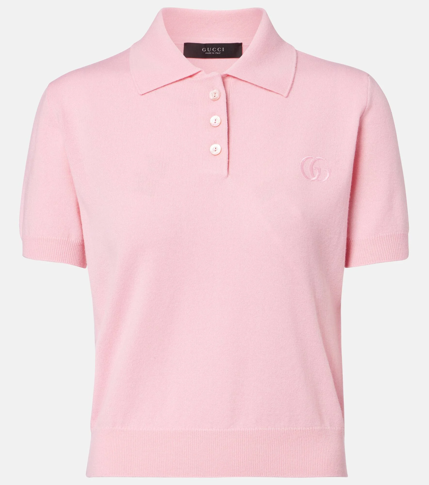 Part of Gucci's La Famiglia collection, this polo shirt is knitted from wool in an eye-catching pink colorway. The design is complemented by tonal Double G embroidery at the chest. Product Details - Material: 100% wool - Care instructions: dry clean - Made in Italy - Color: pink - Designer color name: Spark Clas Pink/Mix - Details: 88% wool, 11% polyamide, 1% elastane - Embroidery: 100% polyester - Contains non-textile parts of animal origin - Collar: polo collar - Hem: ribbed - Cuff: ribbed - Item number: P01150119 Size & Fit - True to size - Straight fit - Slightly cropped - Height of model is 174cm-68.5" and wears a size XS