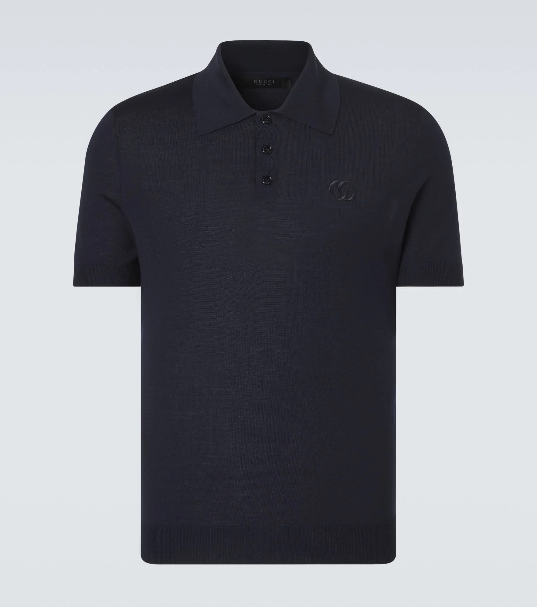 This Gucci polo shirt is primed for your refined everyday collection. Made from soft wool, the design features a partially buttoned front and is complete with embroidered Double G detailing. Product Details - Material: 100% wool - Care instructions: dry clean - Made in Italy - Color: blue - Designer color name: Dark Midnight/Mix - Trim: 80% wool, 18% polyamide, 2% elastane - Insert: 90% wool, 7% polyamide, 3% elastane - Contains non-textile parts of animal origin - Collar: polo collar - Closure: partially buttoned front - Cuff: ribbed - Hem: ribbed - Item number: P01151305 Size & Fit - True to size - Straight fit - Slightly stretchy fabric - Falls to the hip - The model in the picture is 185cm-6'1" and wearing a size L