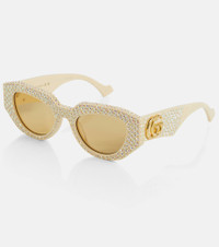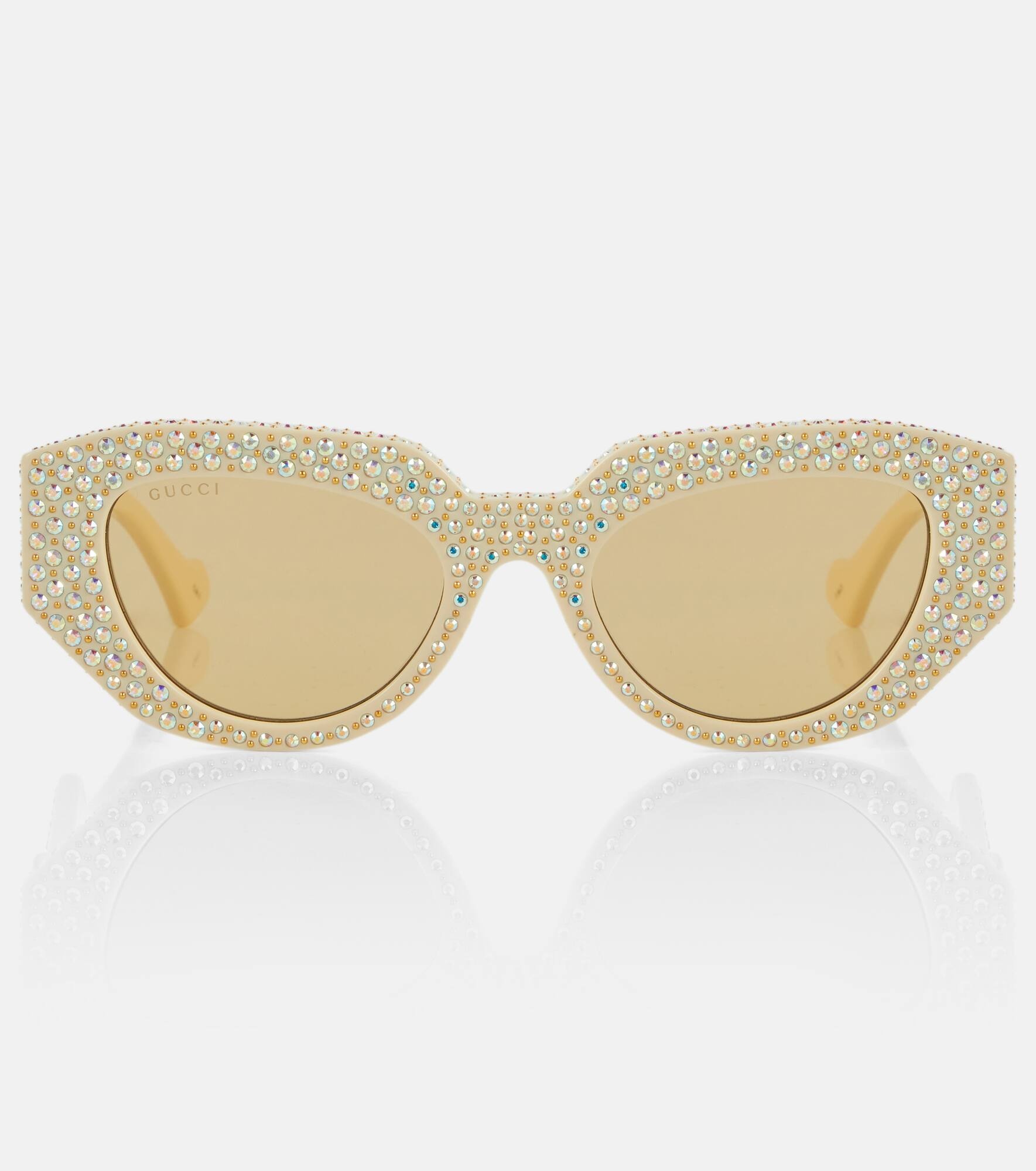 Shimmering crystals and gold-toned accents make these Gucci sunglasses a must-have in every fabulous eyewear collection. They’re made from durable ivory acetate to a timeless oval silhouette that’ll never go out of style. Product Details - Frame material: acetate - Frame color: gold - Lens filter category 3 - Lens color: yellow - Made in Italy - comes in a hard case - comes with cleaning cloth - The color of the case may vary - Designer color name: Ivory-Ivory-Brown - Item number: P00869845 Size & Fit - Lens width: 51mm-2" - Bridge size: 20mm-0.8" - Earpiece length: 145mm-5.7"