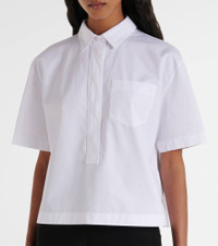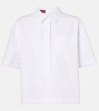 Product Details - Material: 100% cotton - Care instructions: dry clean - Made in Italy - Designer color name: White - Contains non-textile parts of animal origin - Closure: buttoned back - Pockets: breast pocket - Item number: P01004292 Size & Fit - True to size - Dropped shoulders - Low back - Designed for a loose fit - Non-stretchy fabric - Falls to the hip - The model seen in the picture is 178cm-5'10" and wearing a size IT 40