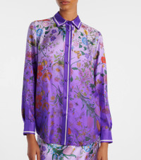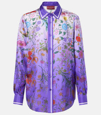 Gucci represents Italian sophistication, blending artisanal excellence with glamour and versatile daily wear. This silk shirt is finished with a delicate floral print and features a classic buttoned front for a charming ensemble. Product Details - Material: 100% silk - Care instructions: dry clean - Made in Italy - Designer color name: Lilac/Purple/Mc - Item color: purple - Closure: buttoned front - Collar: classic (Straight point) - Item number: P01052911 Size & Fit - True to size - Straight fit - Non-stretchy fabric - Falls below the hip - The model seen in the picture is 178cm-5'10" and wearing a size IT 40