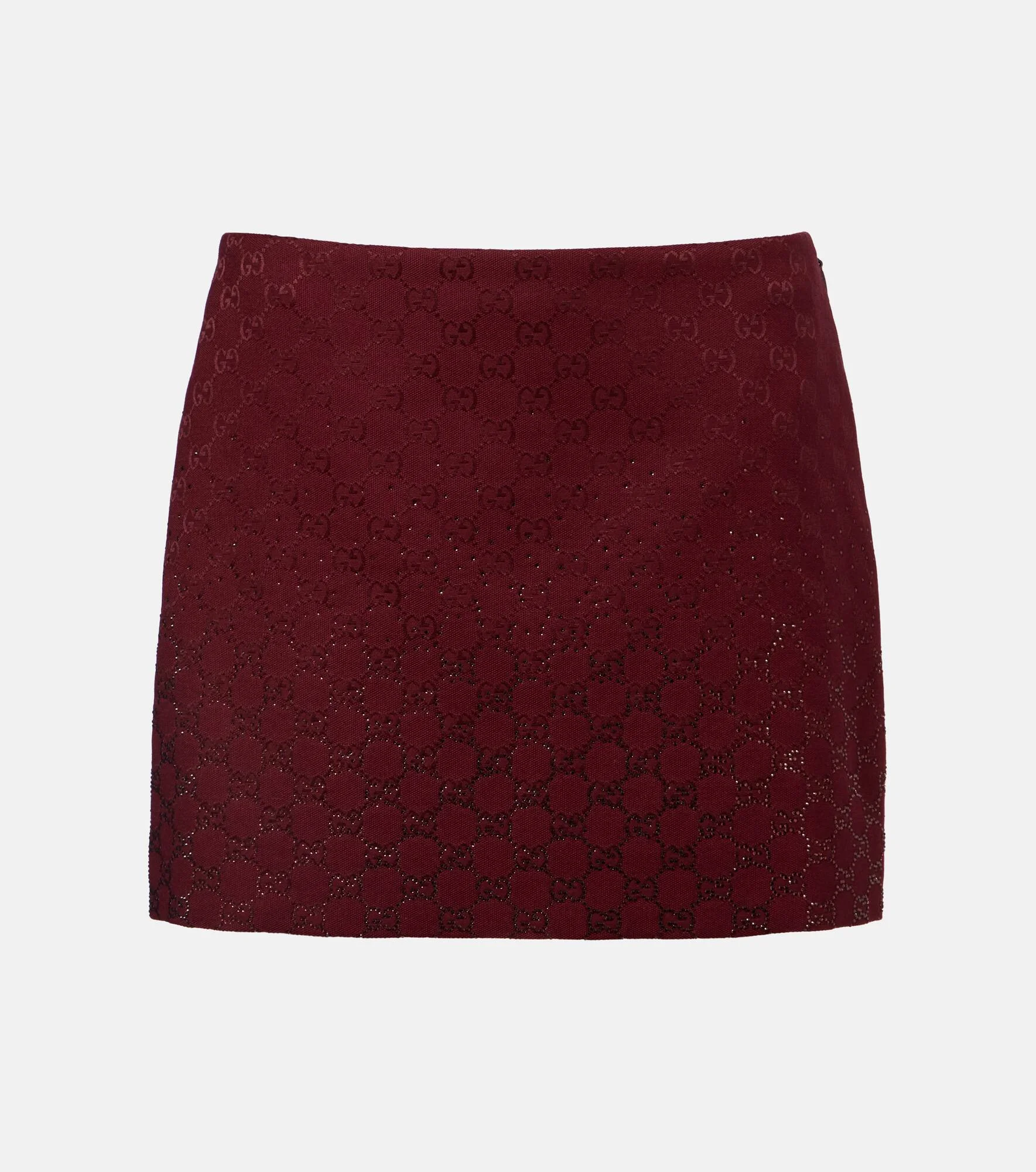 Dazzle no matter the occasion in this miniskirt from Gucci. Made from the brand's signature GG Canvas in a rich hue, the style features gradient crystal embellishments all over. Product Details - Material: 70% cotton, 30% polyester - Care instructions: dry clean - Made in Italy - Designer color name: Rosso Ancora - Item color: burgundy - Lining: 100% viscose - Details: 100% glass - Closure: invisible zipper - Includes: dust bag - Item number: P01119284 Size & Fit - True to size - Non-stretchy fabric - Sits low on the hips - Height of model is 177cm-69.5" and wears a size IT 40