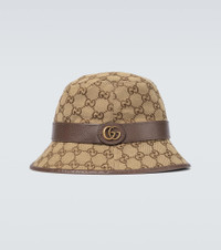 Part of the Gucci Epilogue collection, this beige fedora hat feature's the labels' all-over double G monogrammed canvas, finished with brown leather trims. Product Details - Care instructions: do not wash - Details: 100% calf leather - Lining: fully lined - Material: 71% cotton, 29% polyester - Made in Italy - Item number: P00533460 Size & Fit - Width of brim 6cm-2.5"