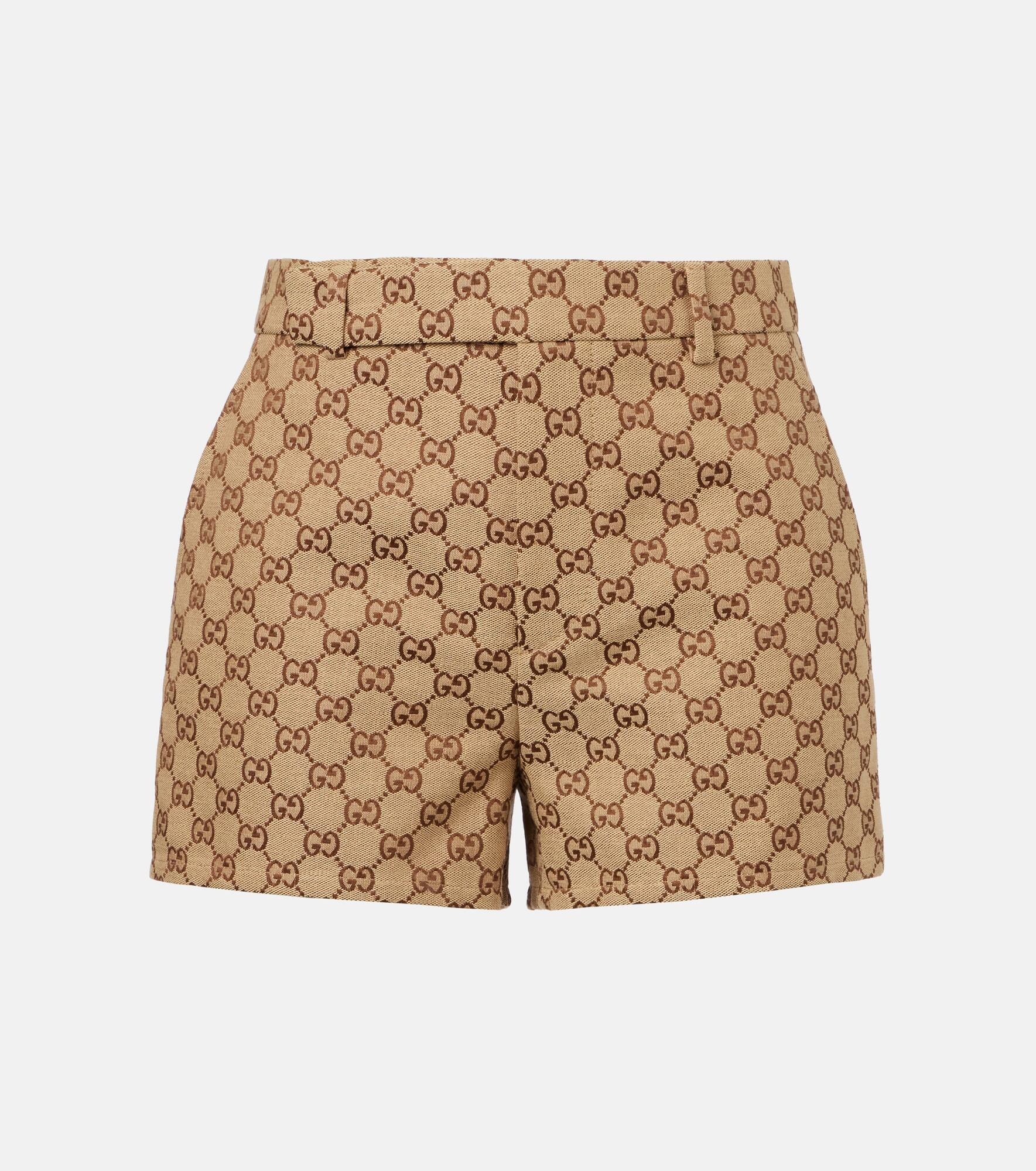 These shorts from Gucci are made from a cotton-blend to an elegant silhouette with a tonal belt. They feature the iconic GG pattern all over. Product Details - Material: 70% cotton, 30% polyester - Care instructions: dry clean - Made in Italy - Designer color name: Camel/Ebony/Mix - Item color: beige - Contains non-textile parts of animal origin - Pocket lining: 100% cotton - Item number: P01071997 Size & Fit - True to size - Non-stretchy fabric - Straight leg - The model seen in the picture is 178cm-5'10" and wearing a size IT 40