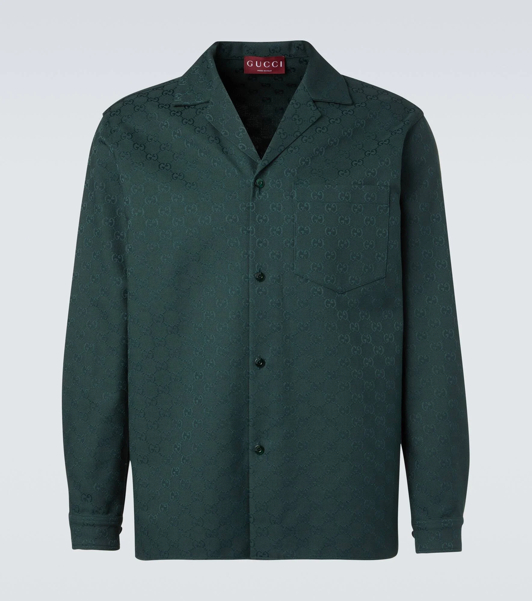 Seasonless elegance is the hallmark of all Gucci collections, as showcased by this shirt. Made from cotton-blend canvas with a chest pocket, the style is fully covered in the house's GG monogram. Product Details - Material: 70% cotton, 30% polyester - Care instructions: dry clean - Made in Italy - Designer color name: Petrolium - Item color: green - Contains non-textile parts of animal origin - Cuff: buttoned - Pockets: angled chest pocket - Closure: buttoned front - Item number: P01124233 Size & Fit - True to size - Without pleats in the back - Classic fit - Non-stretchy fabric - Falls below the hip - Height of model is 192cm-75.5" and wears a size IT 46